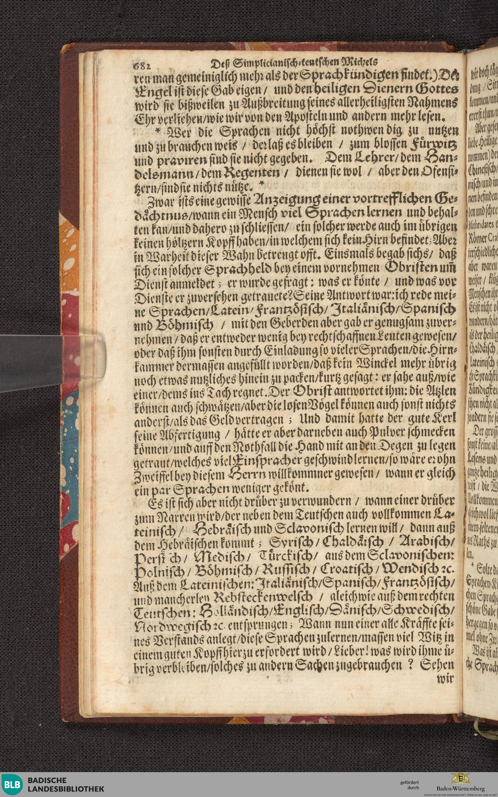 Deß weltberuffenen Simplicissimi Pralerey und Gepräng in seinem teutschen Michel / jedermänniglichen ... ohne Lachen zu lesen erlaubt von Signeur Meßmahl [Hans J. Chr. von Grimmelshausen]