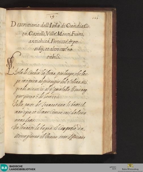 Delli Stati di Toscana, de Ferrara, de Parma, de Mantua, d'Urbino, de Milano, de Genova, di Vinetia, di Candia - Cod. Durlach 27