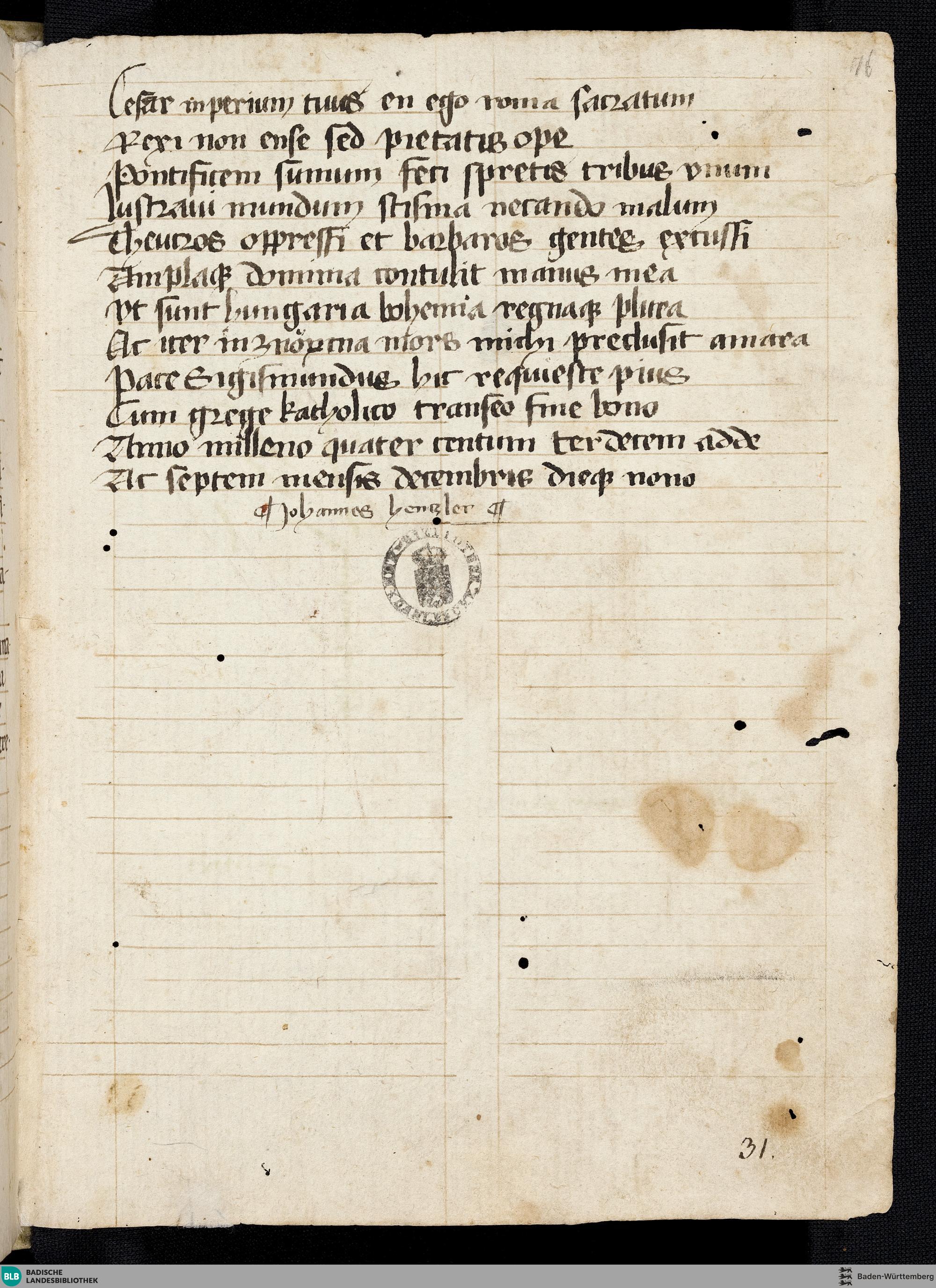 6 Distichen, inc.: Cesar inperium tuus en ego roma sacratum/rexi non ense sed pietatis...