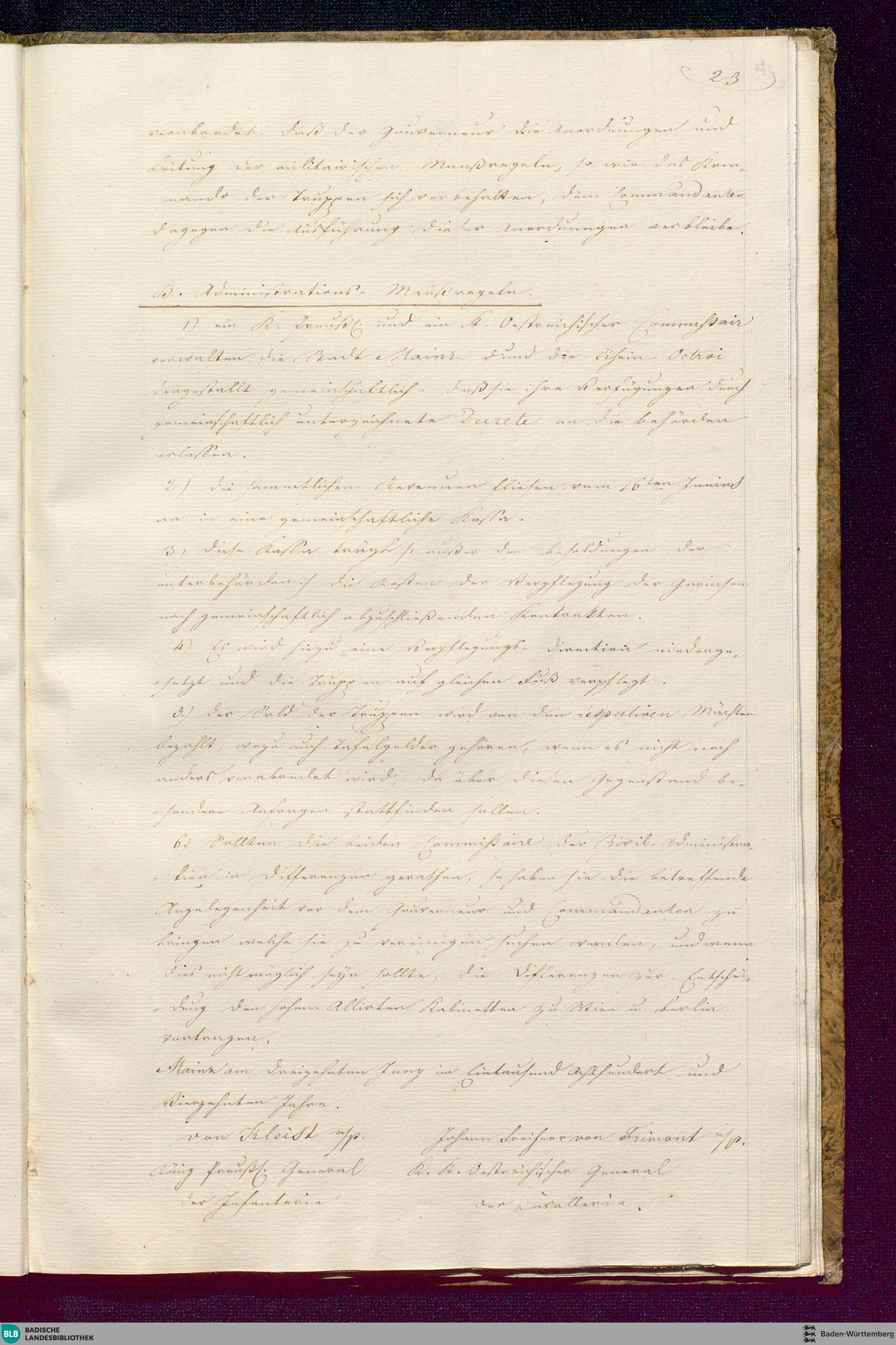 B. Administrations- Maaßregeln