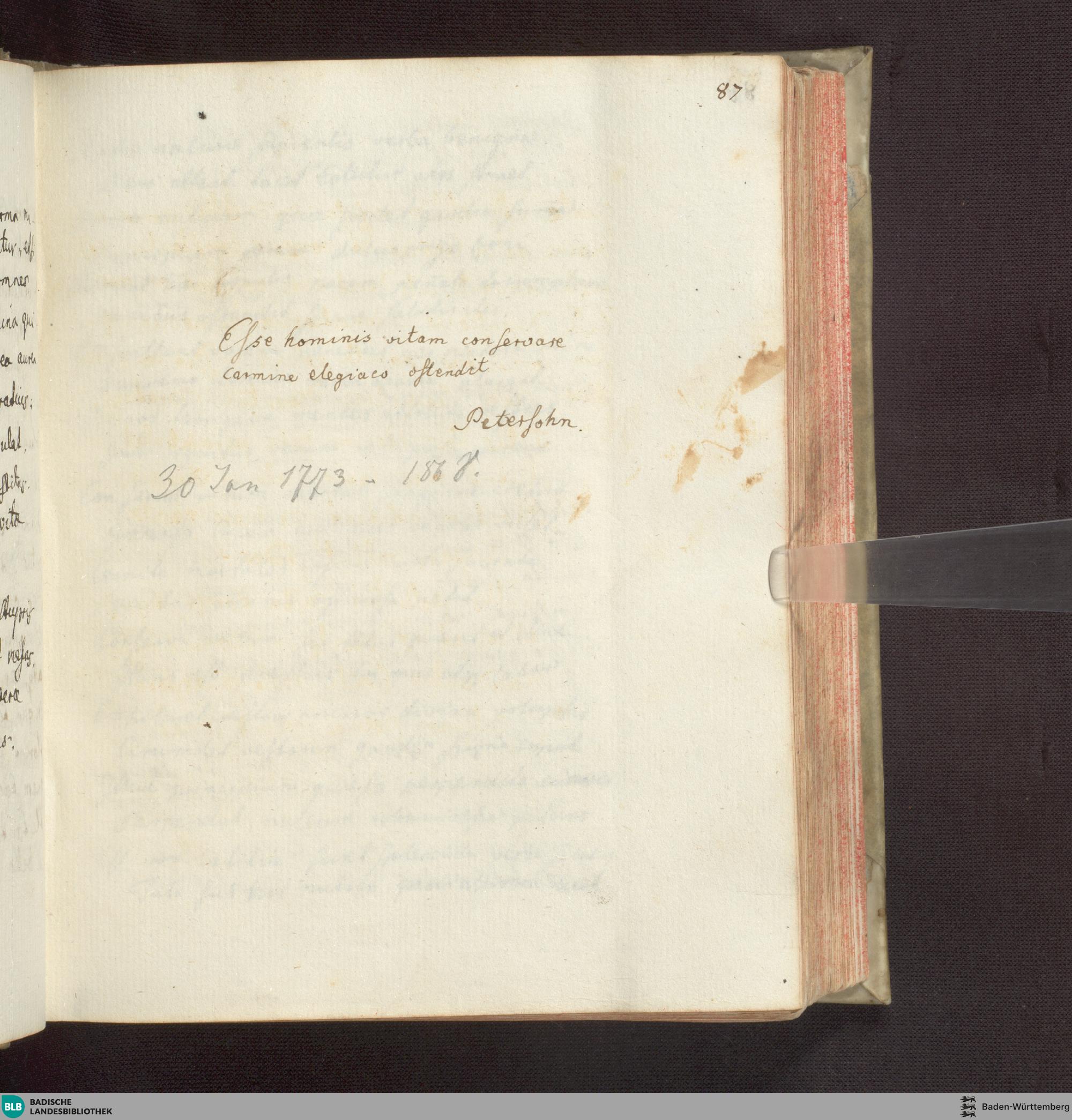 [Petersohn, ...]: Esse hominis vitam conservare carmine elegiaes oftendit, 30 Jan....