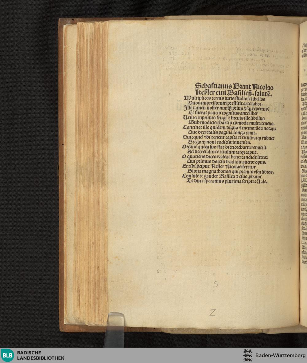 Sebastianus Brant Nicolao Kessler civi Basiliensis salutem
