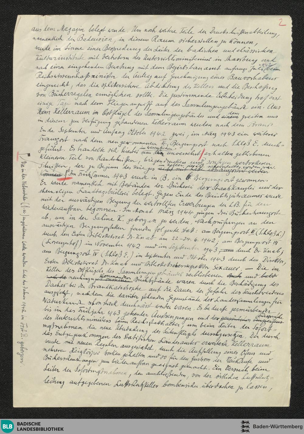 B Die Zerstörung der Landesbibliothek und der Beginn ihres Wiederaufbaues (3. September 1942 - 31. März 1944)