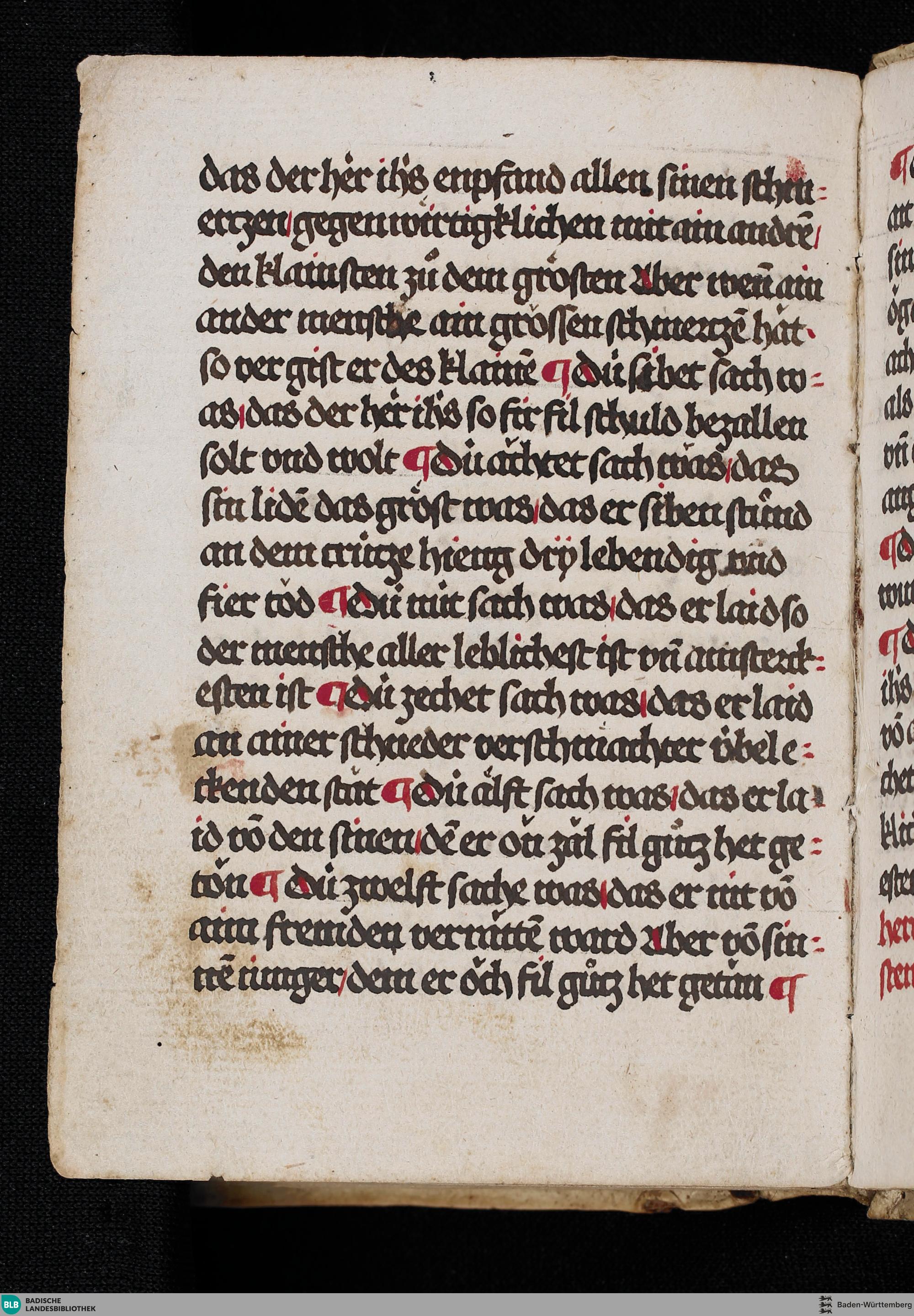 Erbauungsbuch: Traktat über die Gottesliebe. - Betrachtungen über den Kommunionempfang. - Kommuniongebete. - Passionsharmonie. - Kurztexte zur Passion Christi - Cod. St. Georgen 91