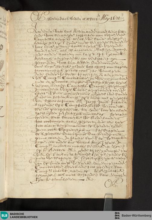 Cod. Karlsruhe 491. Resolutieboek van den Gouverneur Artus Gijsels geduerende zijn...