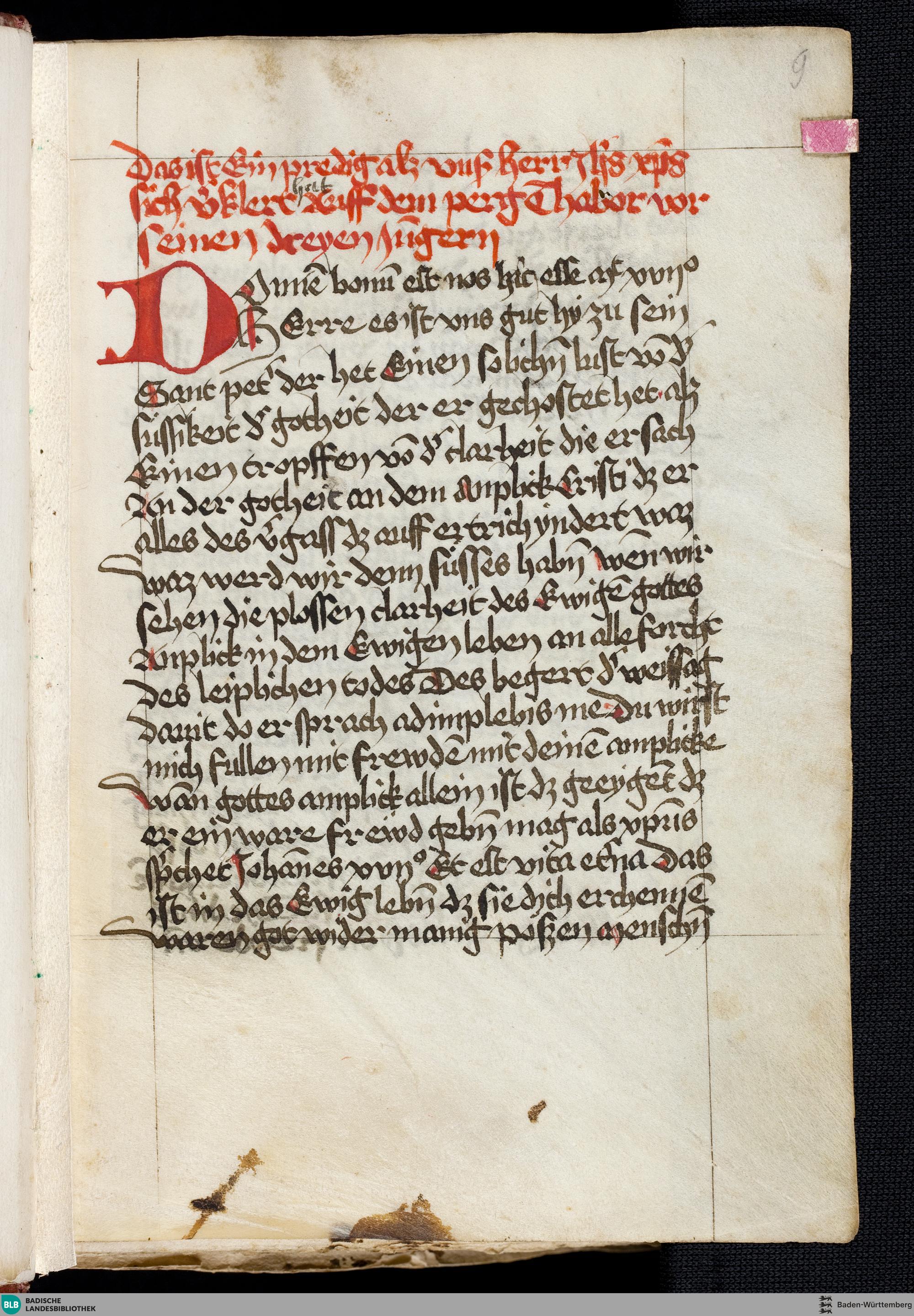 >... Ein predig alz unser herr Ihesus Christus sich verklert hat auff dem perg T...