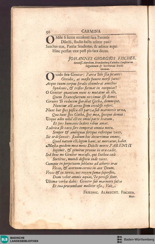 Der getröstete Israel Gottes, zum rühmlichen Andencken Des ... Herrn Johann Jost Hartmann Fischers : Fürstl. Sächß. Gothaischen ... Geheimden Rath und Cantzlars zum Friedenstein, Als Derselbe in ... Franckfurt am Mayn d. 8. April Anno 1701 ... seelig entschlaffen und ... den 10. gedachten Monats beygesetzet worden, hernach ... in einer Gedächtnis-Predigt aus des ... Propheten Jeremiae XXXI.Cap.V,2.3 einfältig vorgestellet / von Heinrich Fergen