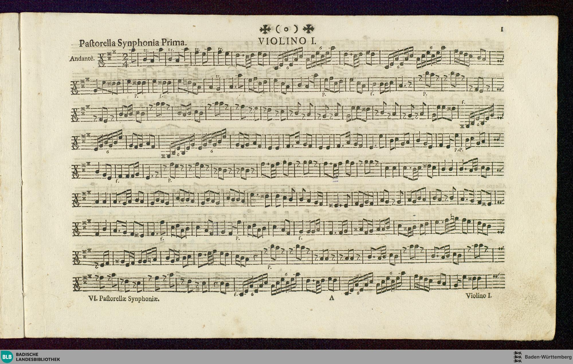 VI. PASTORELLAE SYNPHONIAE : à Quinque Vocibus obligatus Cembalo, Violino I. Violino II. Alto Viola & Violone; OPUS II / Elaboratae à P. F. REMIGIO FALB