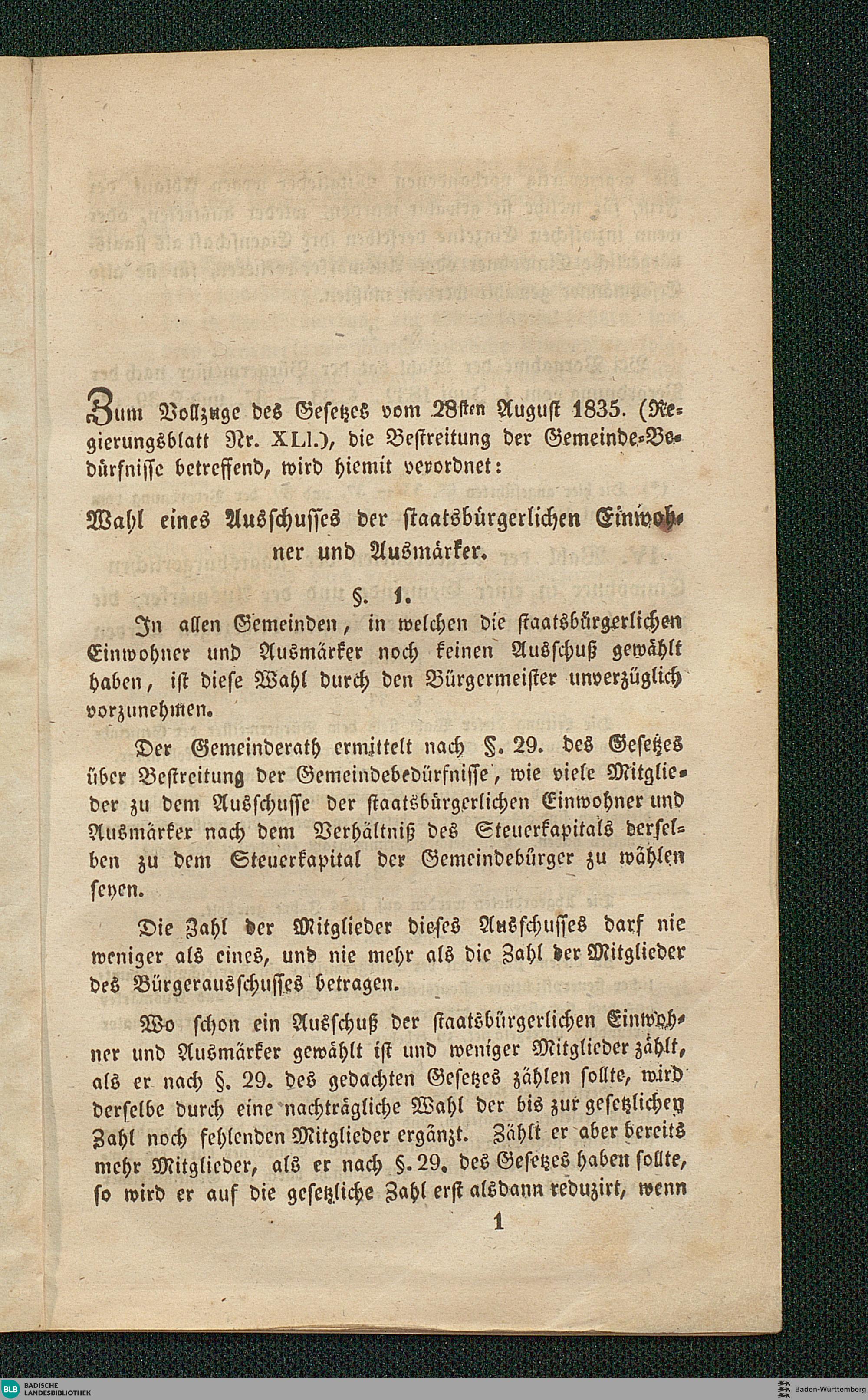 Vollzugs-Verordnung zu dem Gesetz vom 28sten August 1835 über die Bestreitung der Gemeinde- Bedürfnisse