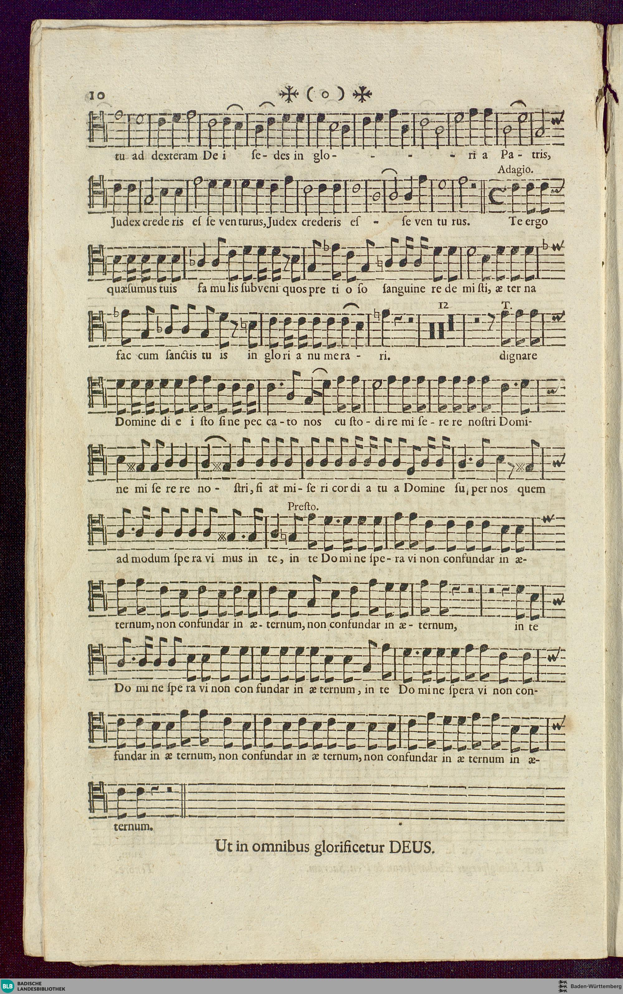 Eucharisticon complectens IV offertoria ... : VIII hymnos modulatos Pange lingua; I. offertorium de nomine Iesu ; quibus accedunt I. Aria de passione Domini, I. Hymnus: Te Deum laudamus; a 4 vocibus obligatis, 2 Violinis necessariis, Alto Viola, 2 Clarinis vel cornibus & Tympanis ad libitum, ac duplici Basso generali; opus XII / Elaborata à R. F. Mariano Königsperger