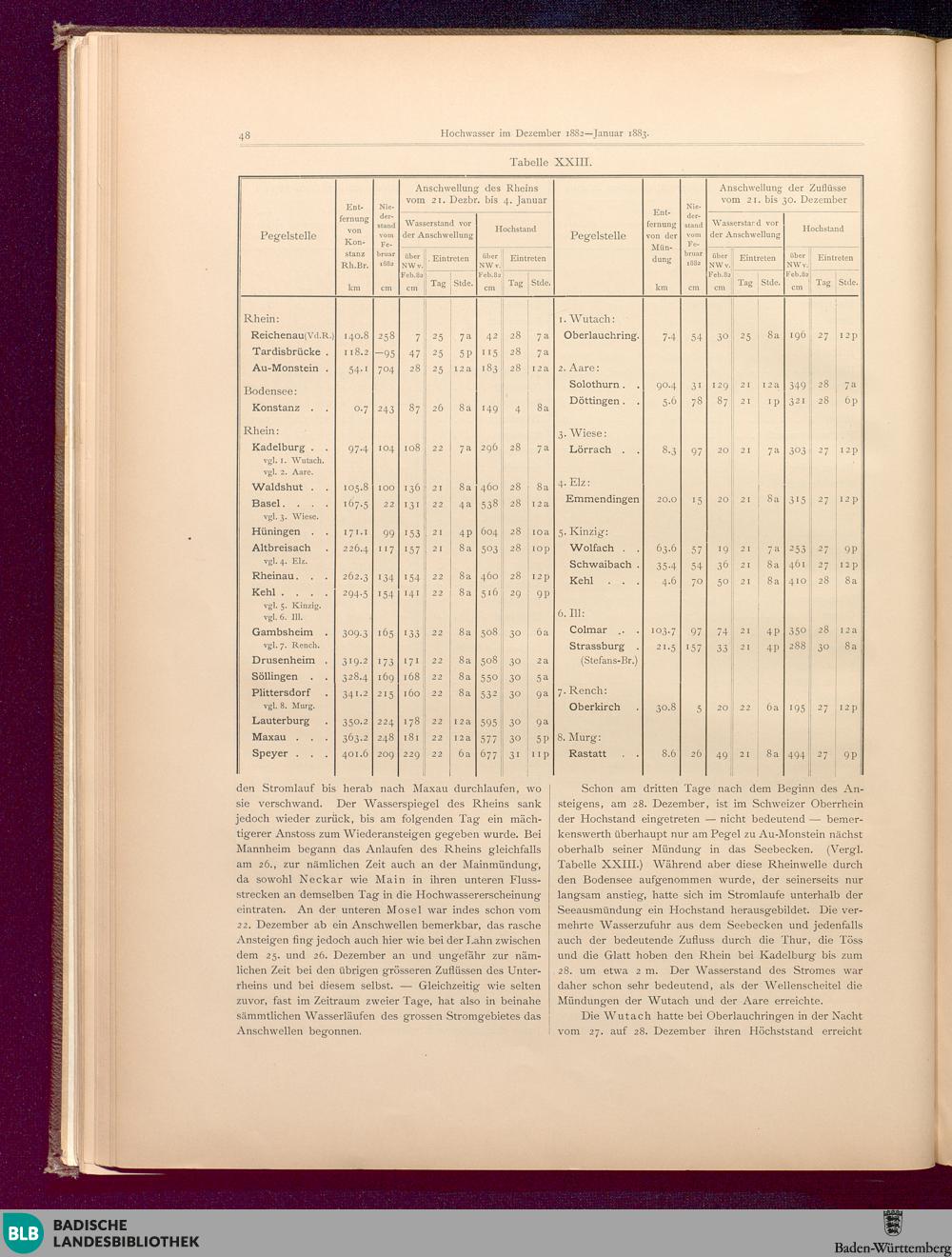 2 (1891) Auftreten und Verlauf der Hochwasser von 1824, 1845, 1852, 1876 und 1882/83