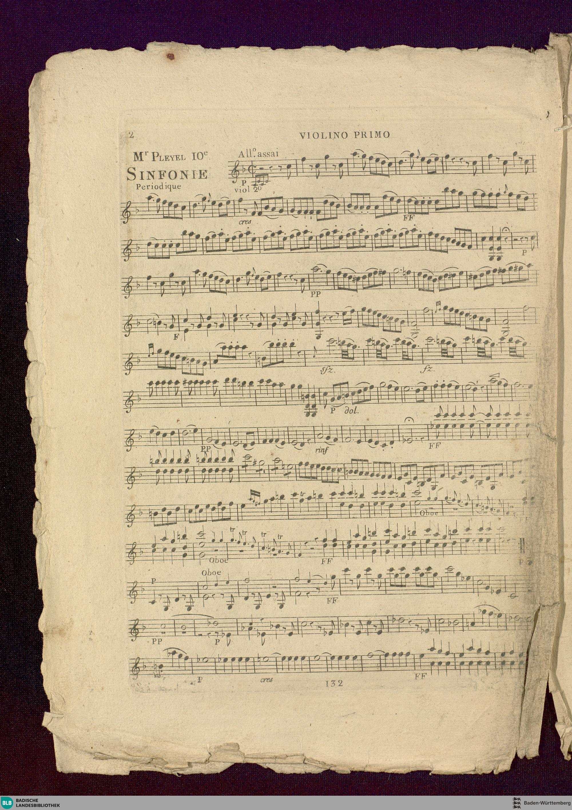 10e Sinfonie périodique : a deux violons, alto et basse, cors et hautbois ad libitum / composée par Mr. Ignace Pleyel