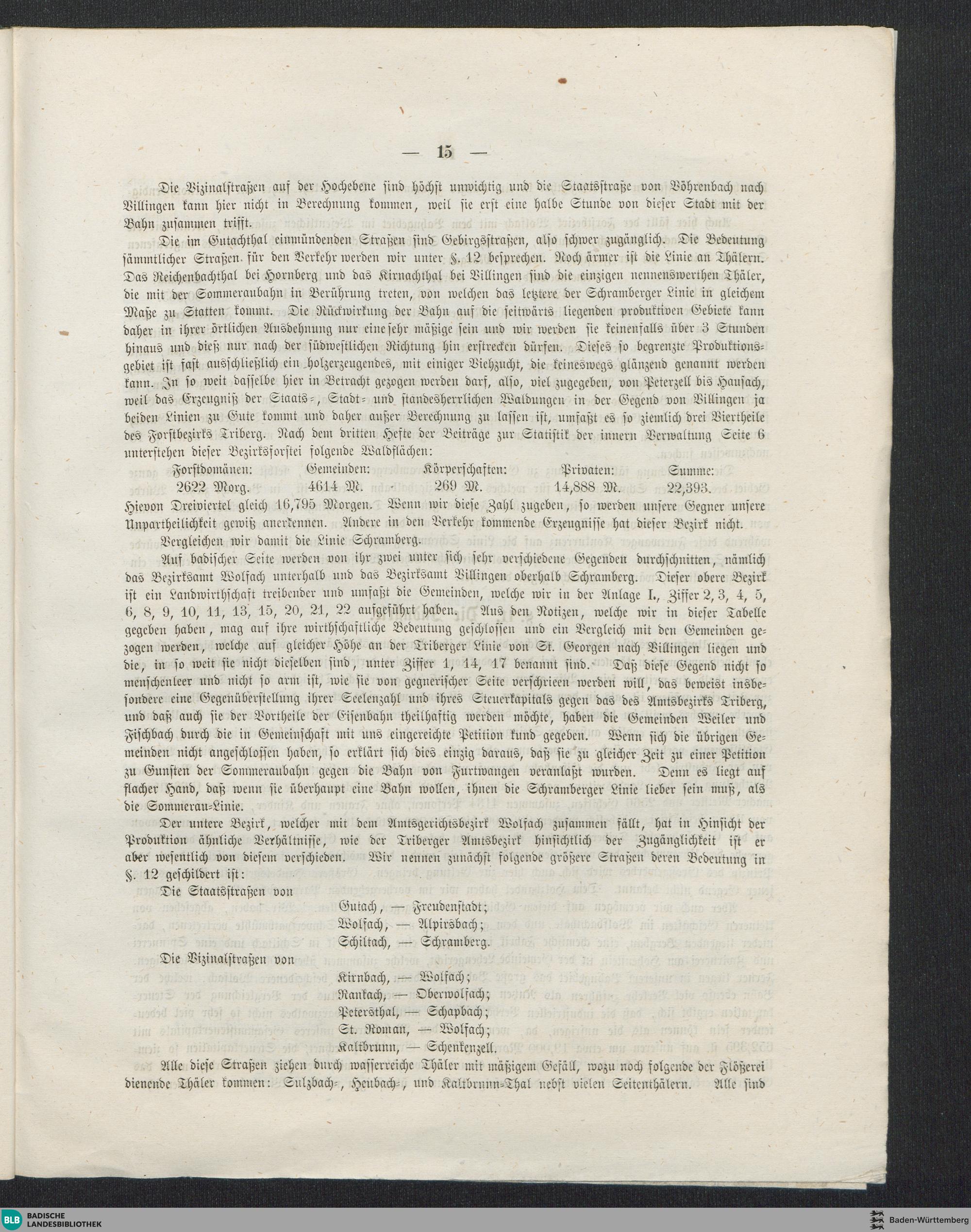 Denkschrift zu den Petitionen der Gemeinden Bergzell, Kaltbrunn, Kinzigthal, Lehengericht, Oberwolfach, Rippoldsau, Schapbach, Schenkenzell, Schiltach und Wolfach, im Amstbezirk Wolfach, und Fischbach und Weiler im Amtsbezirk Villingen, die Fortsetzung der Kinzigthalbahn betreffend / hrsg. von dem Eisenbahnausschuß in Wolfach
