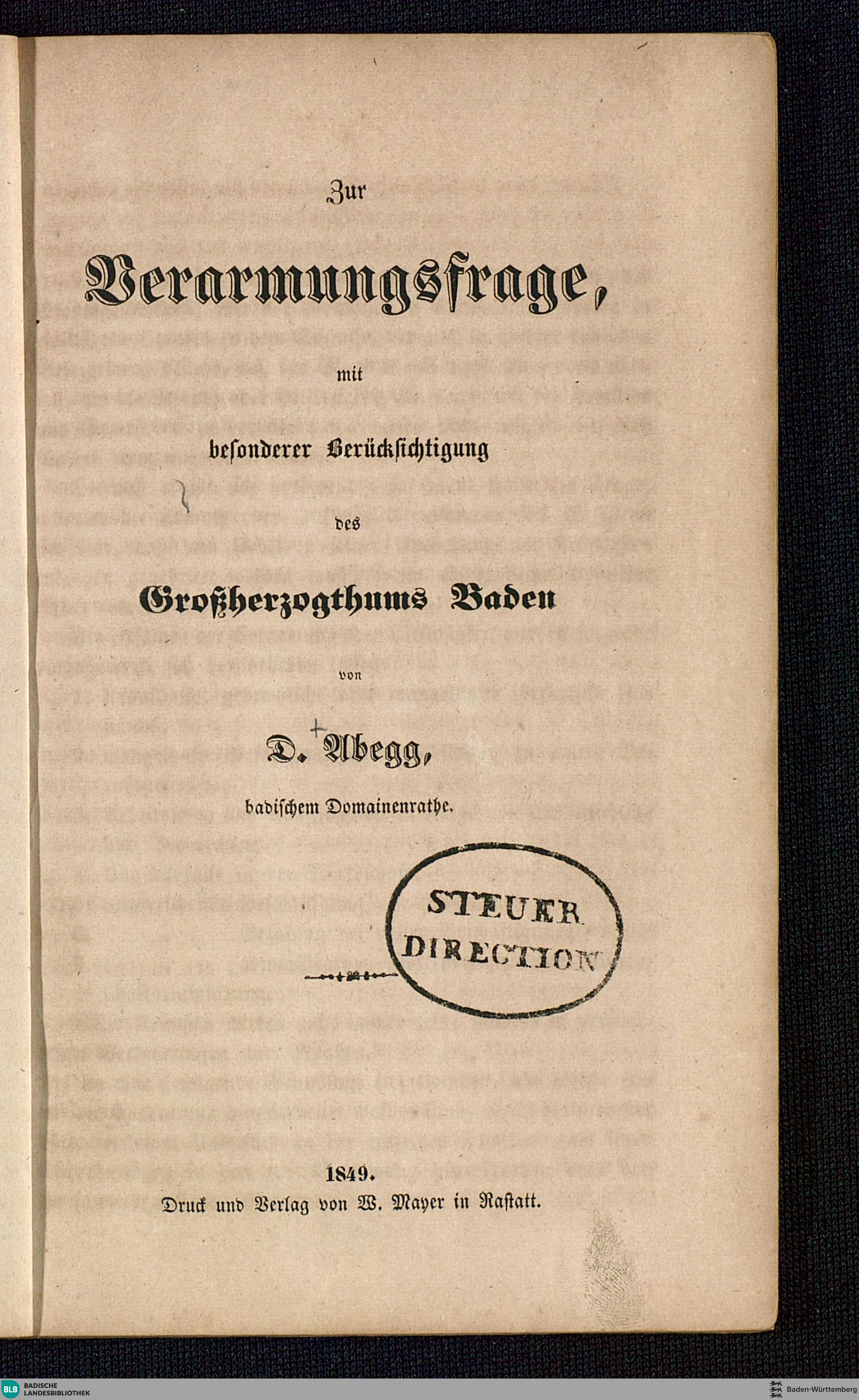 Zur Verarmungsfrage mit besonderer Berücksichtigung des Großherzogthums Baden / von D. Abegg