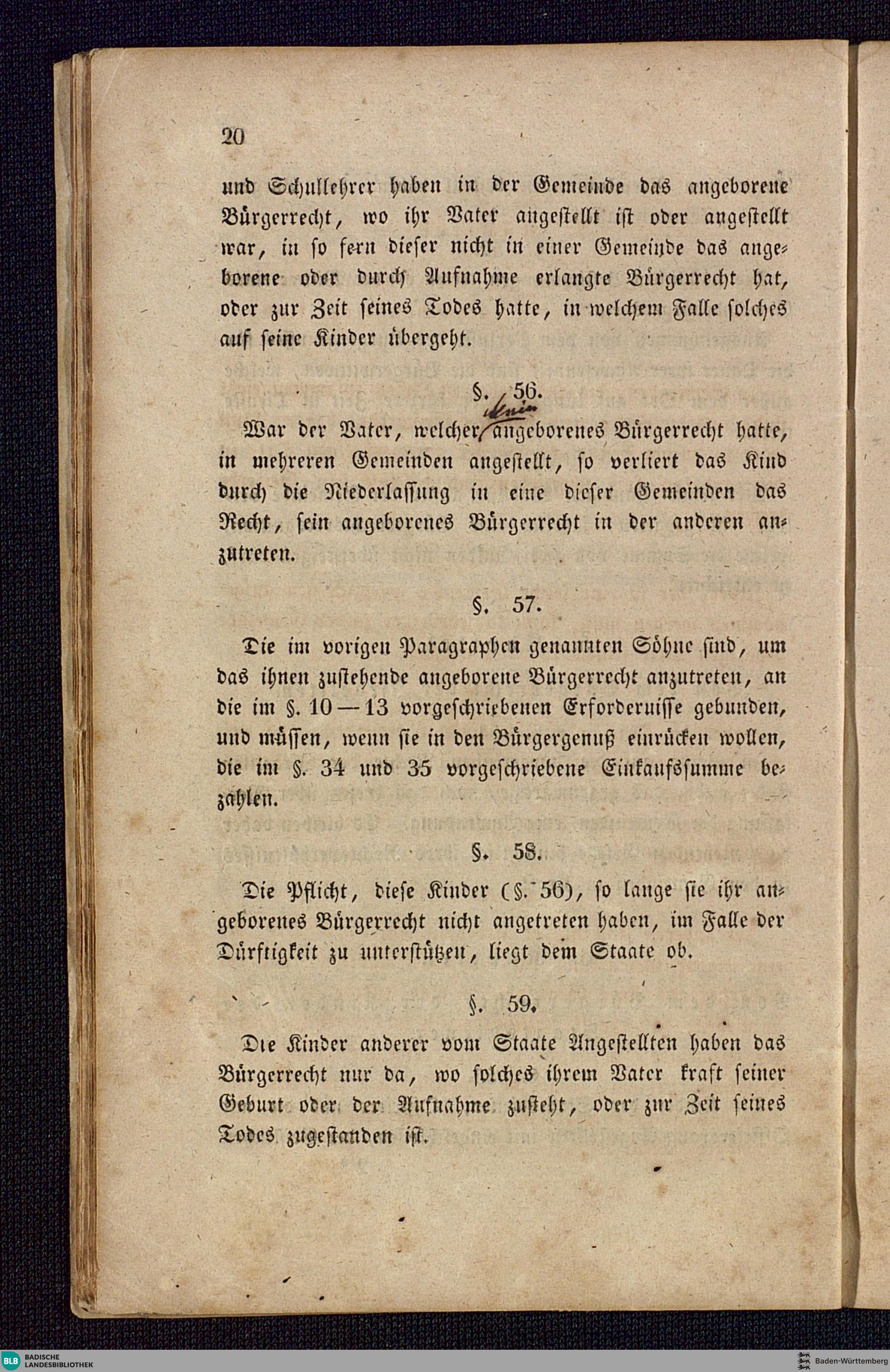 Gesetz über die Rechte der Gemeindebürger und die Erwerbung des Bürgerrechts : auf Befehl des Großherzogl. Badischen Ministeriums gedruckt.