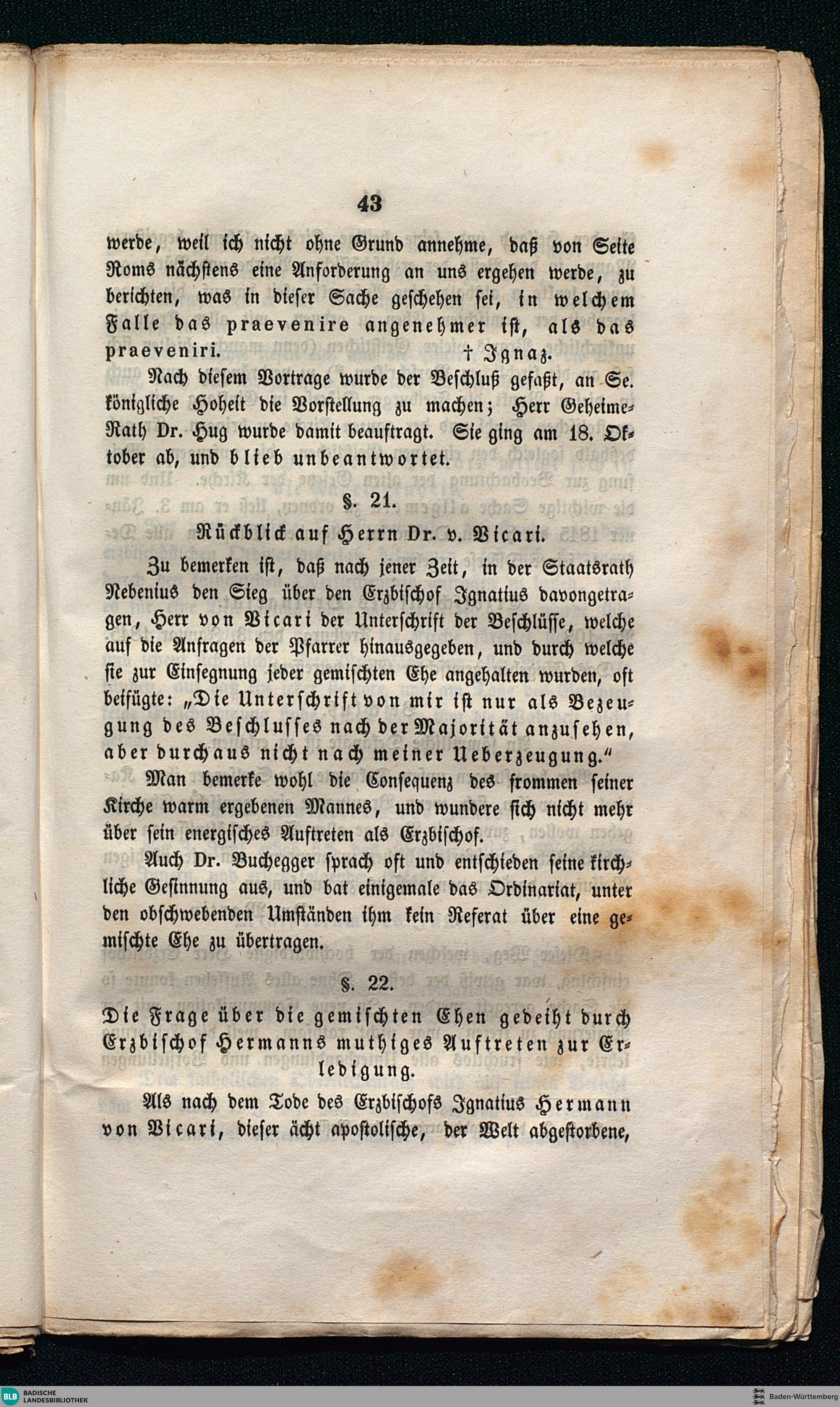 Die gemischten Ehen in der Erzdiöcese Freiburg : nach den Aktenstücken dargestellt; zugl. ein Beitrag zur Beleuchtung der katholischen Zustände in Baden