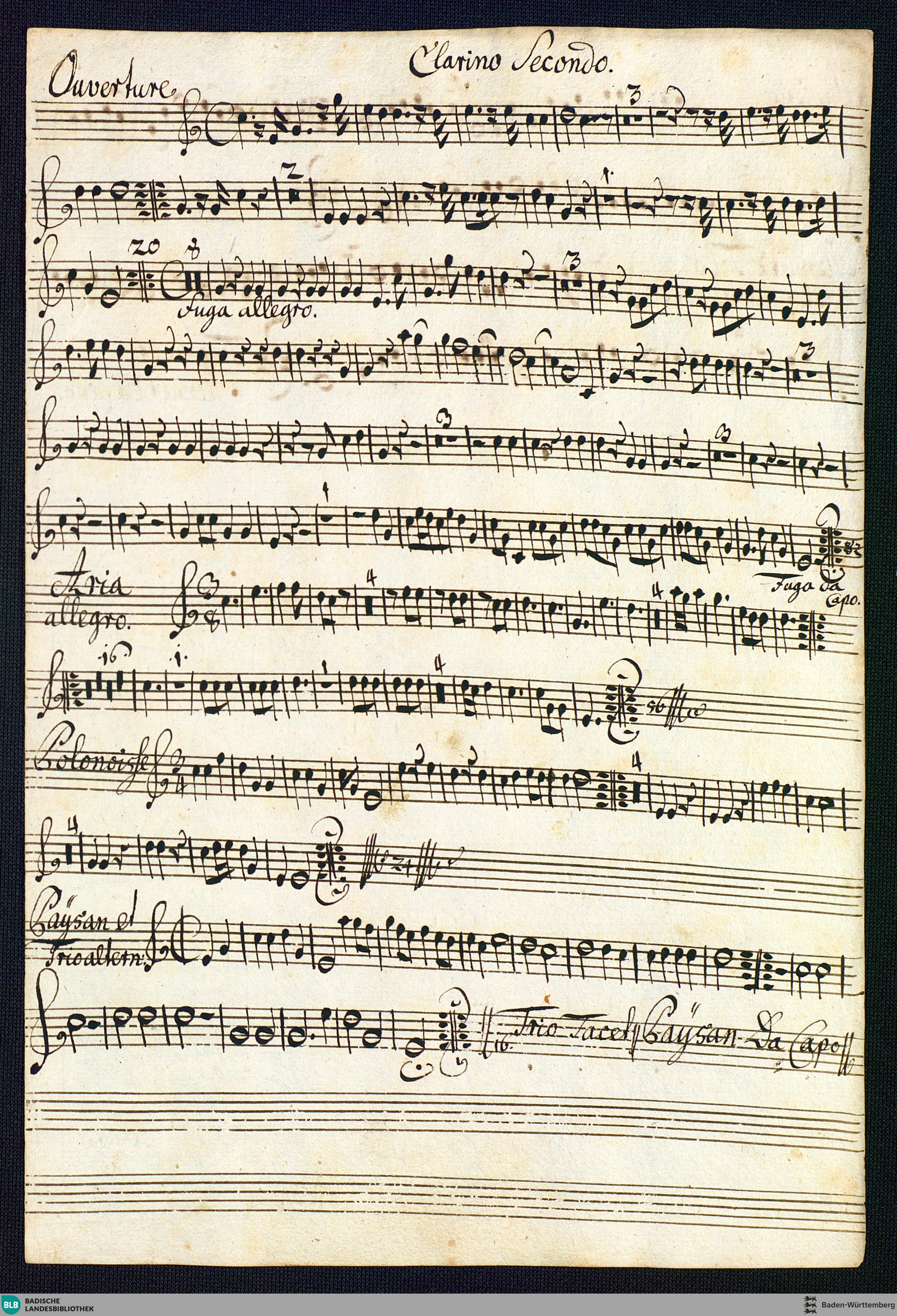 Overtures - Mus. Hs. 394 : vl (2), a-vla, clno (2), bc; D / Anonymus