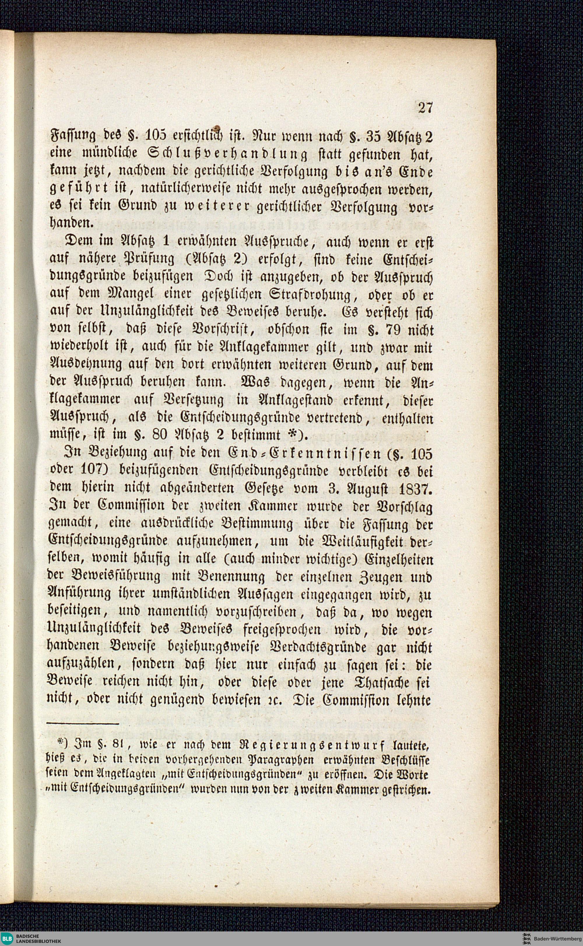 Anmerkungen zu dem großherzoglich badischen Gesetze über Einführung des Strafgesetzbuchs, des neuen Strafverfahrens und der Schwurgerichte / von J. B. Bekk