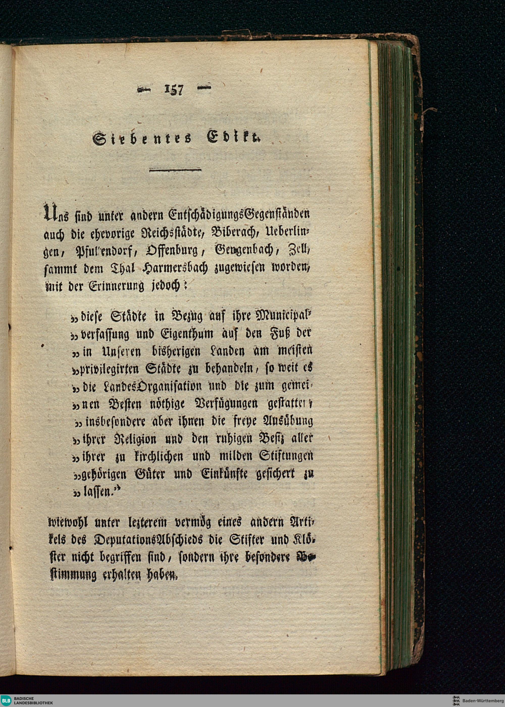 Siebentes Edikt. Mediatisirung obiger Reichsstädte