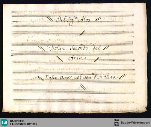 Nasce amor nel sen d'un alma - Mus. Hs. 3a : S, vl (2), a-vla, b; B|b / Girolamo Abos
