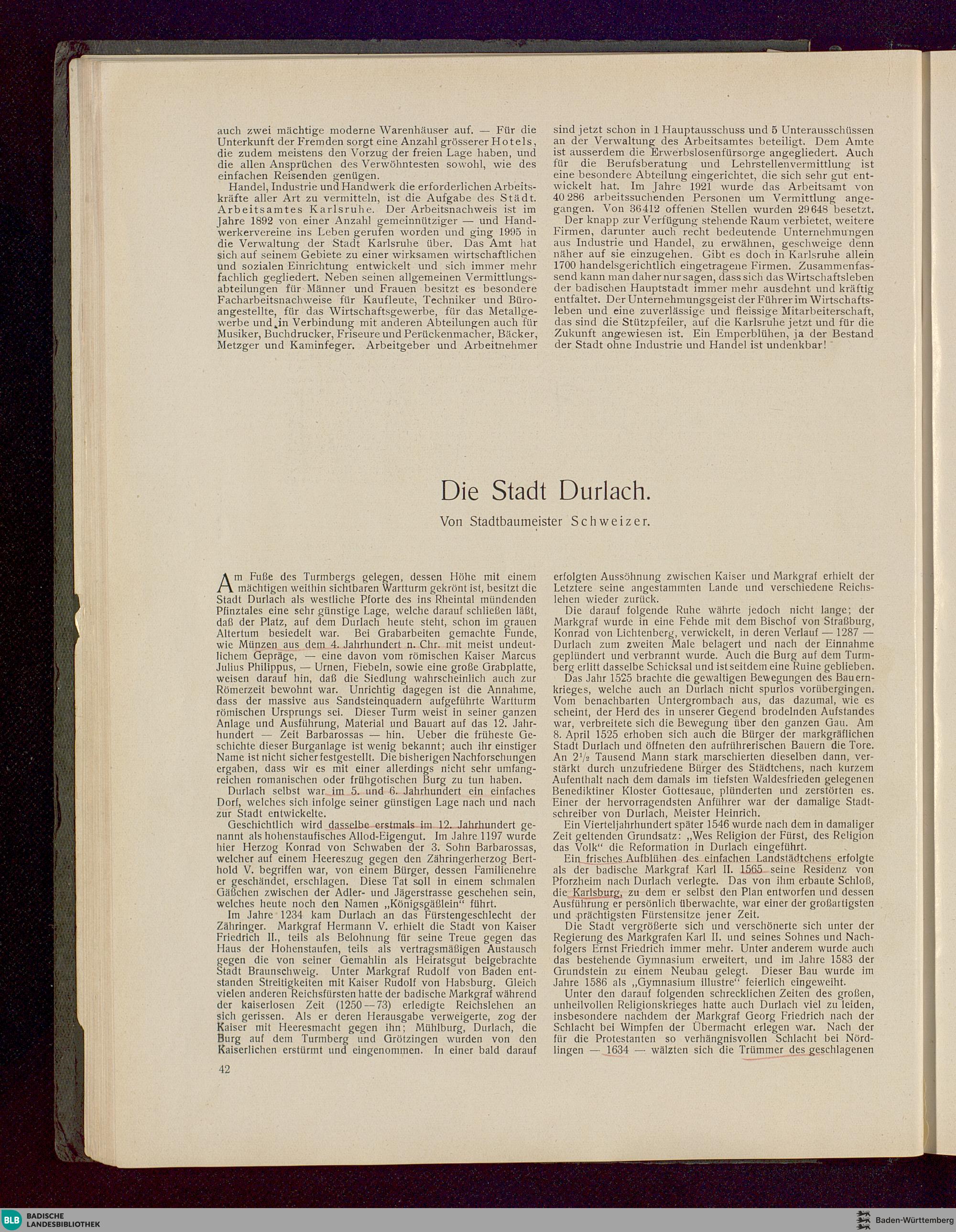 Die Stadt Durlach. Von Stadtbaumeister Schweizer.