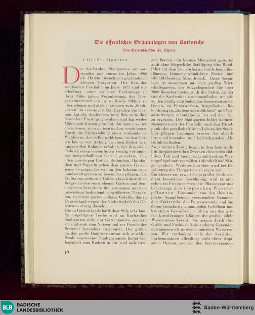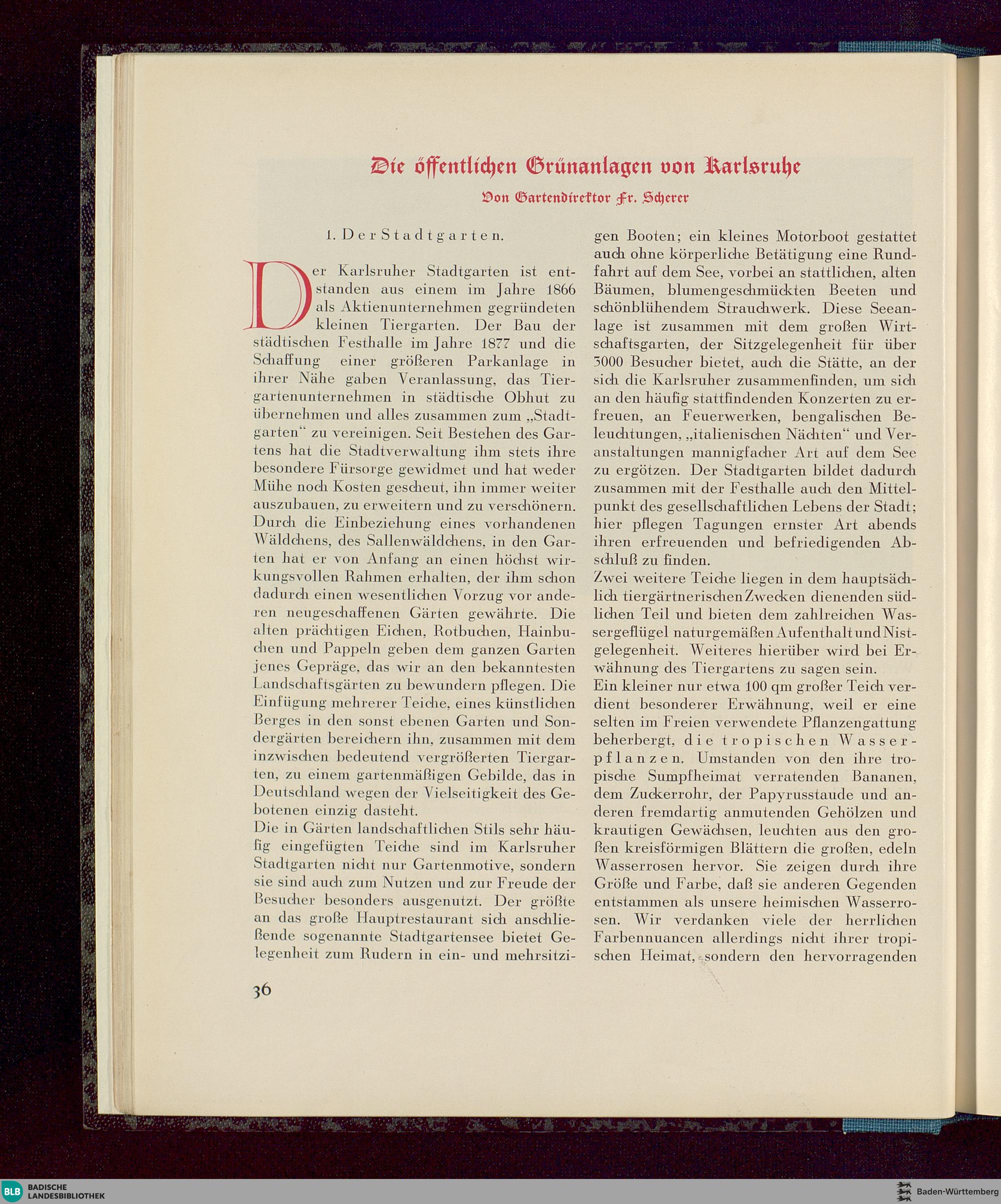 Die öffentlichen Grünanlagen von Karlsruhe. Gartendirektor Fr. Scherer.