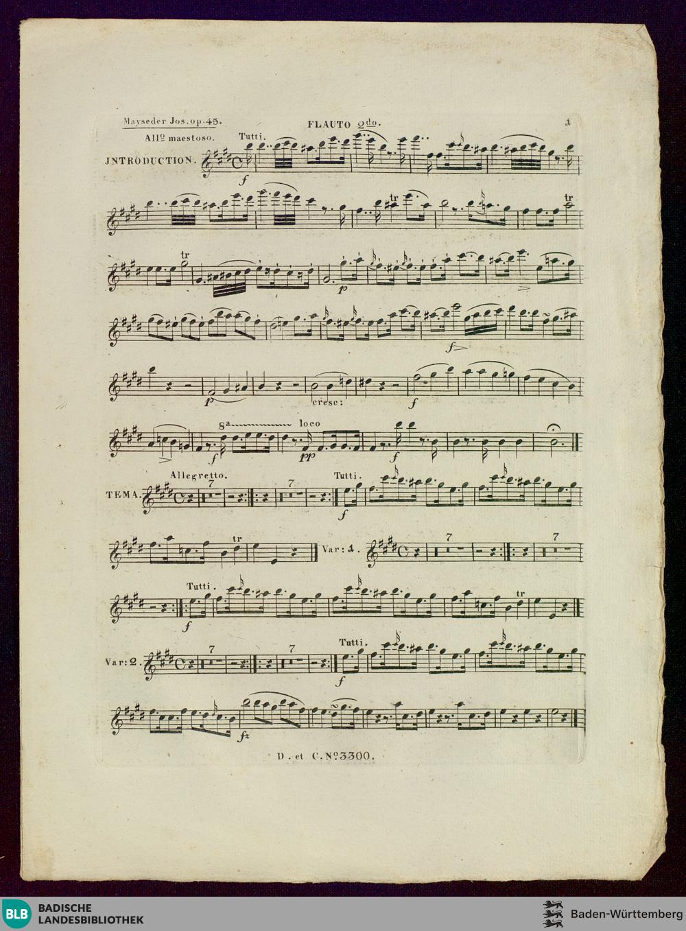 Variations brillantes (en Mi) : sur un thême original pour le violon; avec accompagnement d'orchestre; oeuv. 45 / composées ... par J. Mayseder