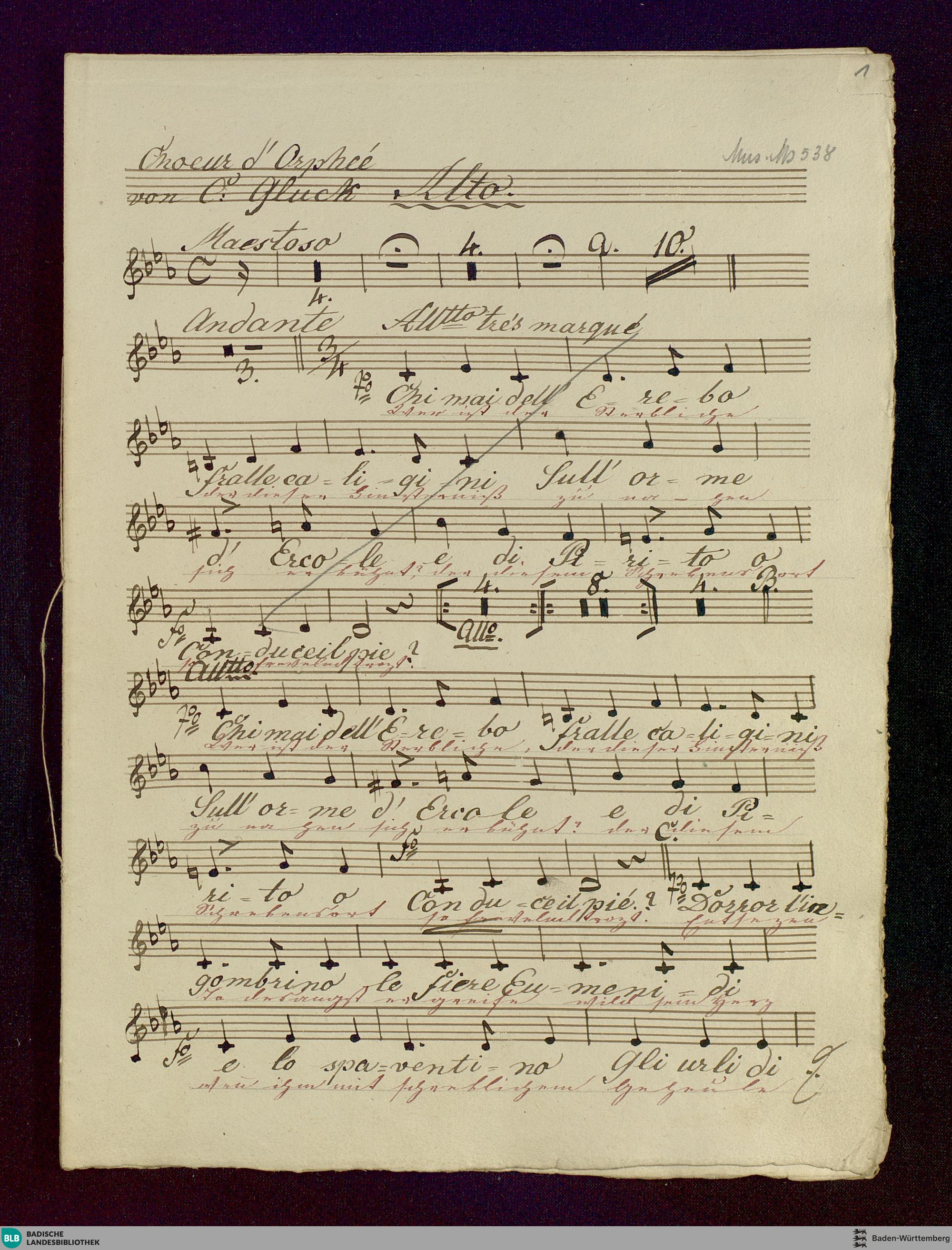 Orfeo ed Euridice. Excerpts - Don Mus.Ms. 538