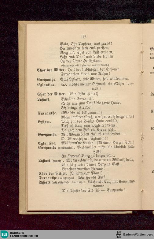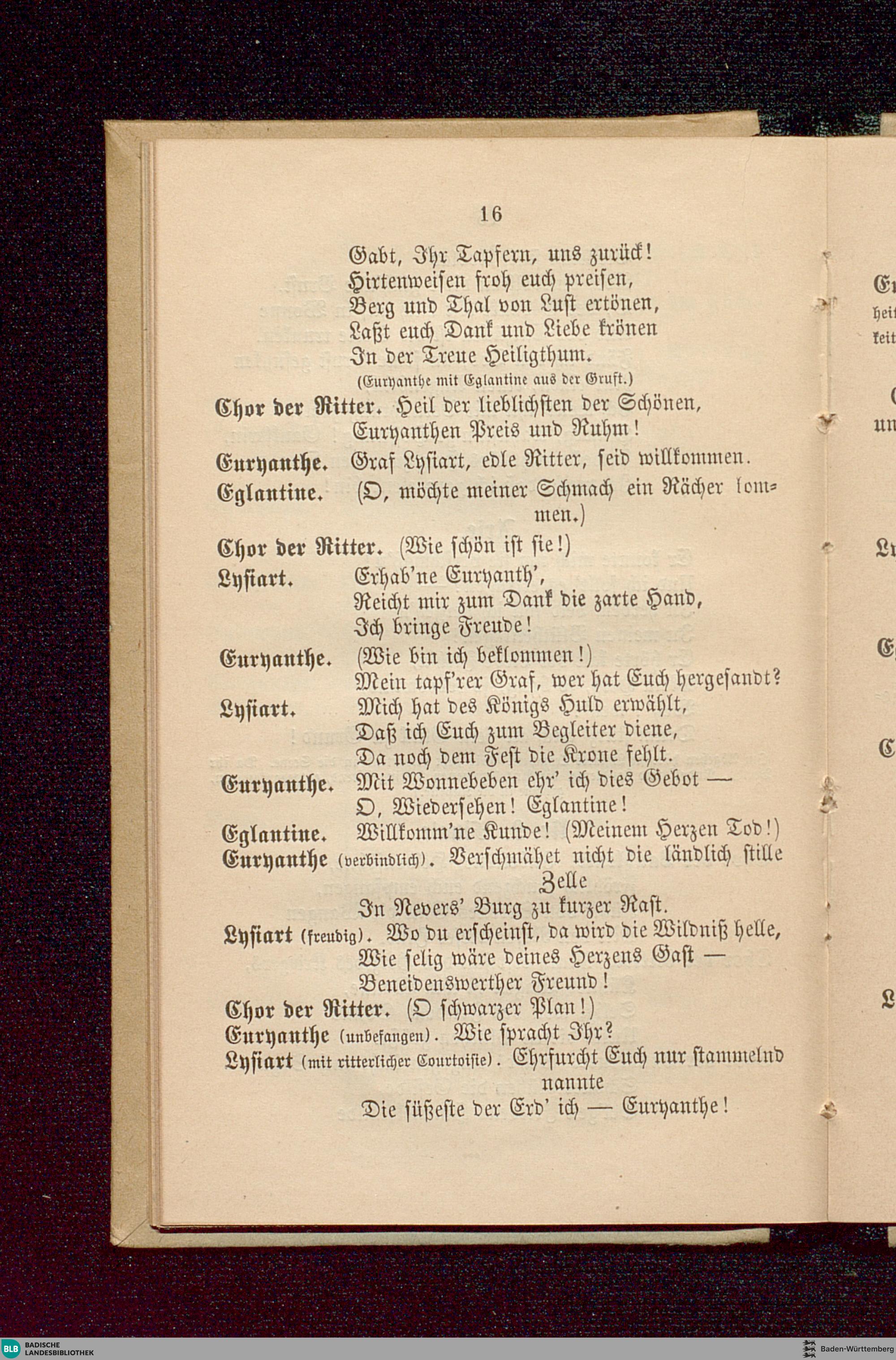 Euryanthe : große romantische Oper in drei Akten; Op. 81 / von Helmina von Chezy. Musik von Karl Maria von Weber