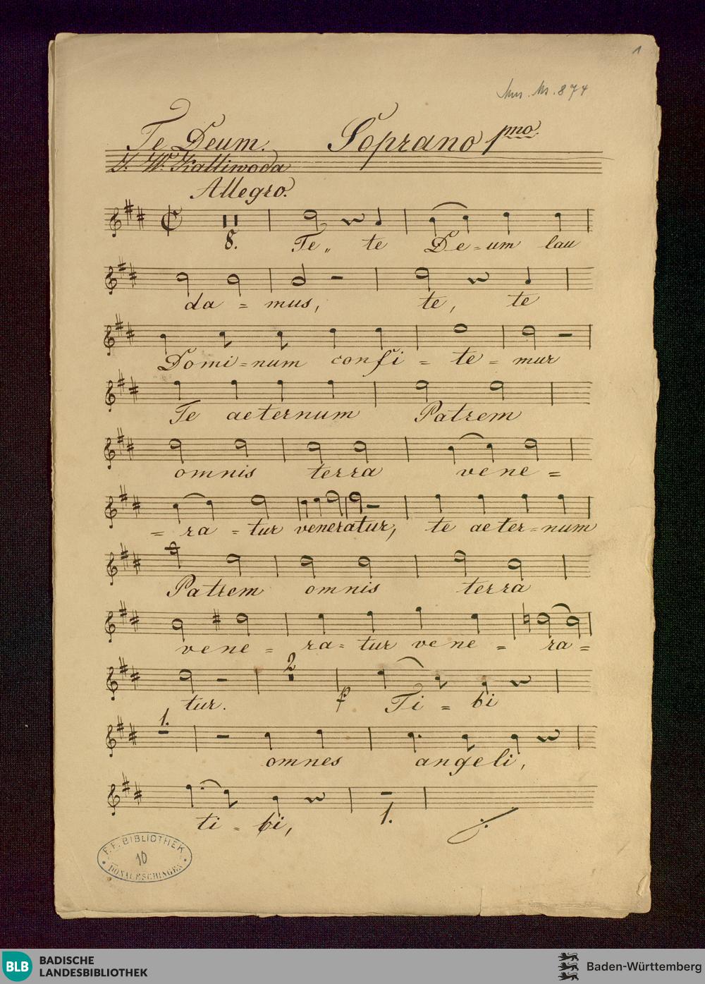 Te Deum - Don Mus.Ms. 874 : Coro, orch; D; StrK WoO 6.23 / Johann Wenzel Kalliwoda