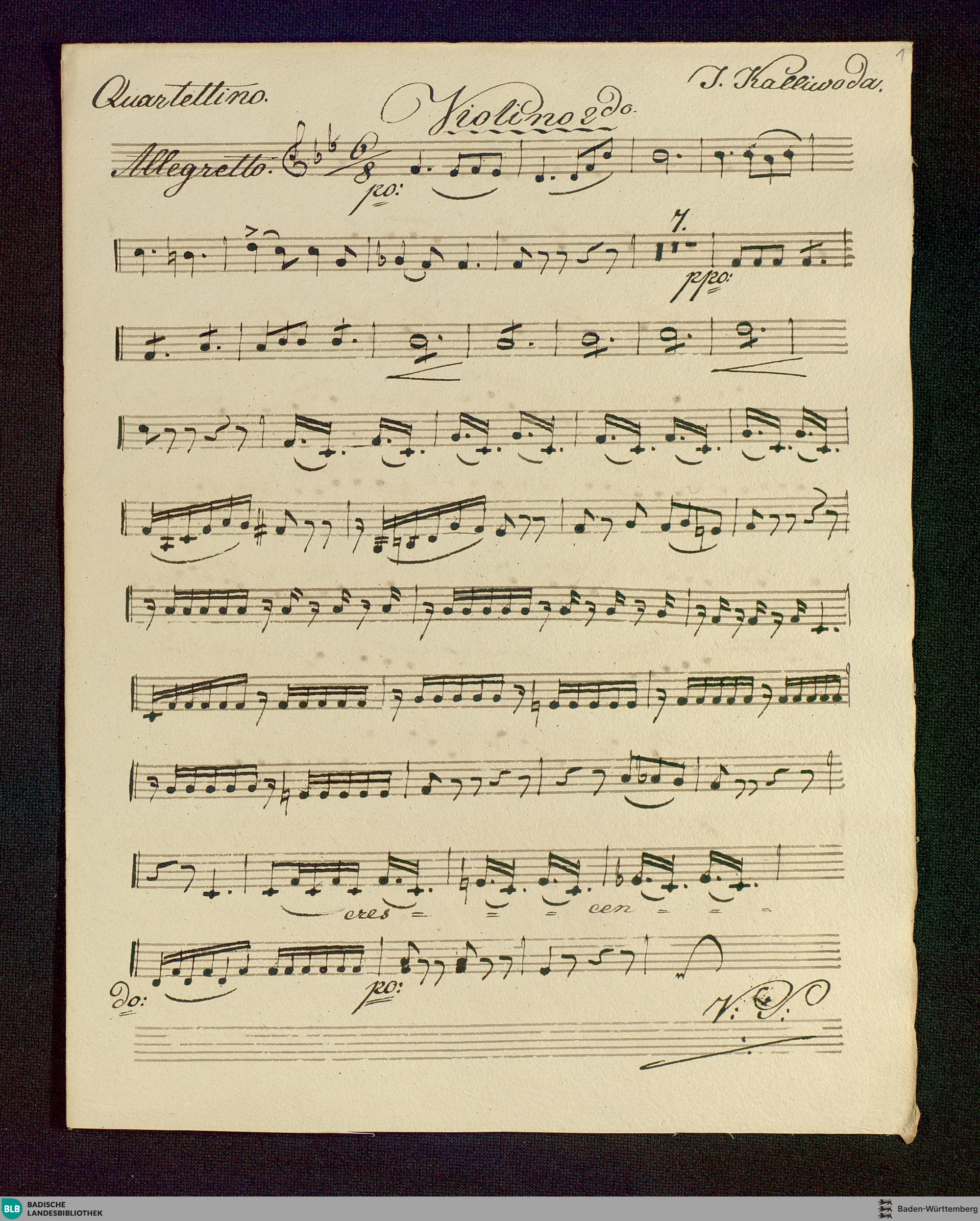 Fra le belle sono quella ch'in belezza equal non ha - Don Mus.Ms. 919 : V (4), orch; B|b; StrK WoO 8.22 / Johann Wenzel Kalliwoda