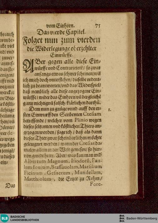 Ein schöner @newer Historischer Discurs Von der Natur, Tugenden, Eigenschafften vnd Gebrauch deß Einhorns : Auch wie vnd wo dasselbig zu finden vnd zu fangen ...; Beneben vielen andern denckwürdigen Historien vnd Geschichten / Durch Laurentium Catelanum, vornehmen Apotheckern deß Hertzogen von Vandosme zu Montpellier in Frantzösischer Sprach beschrieben. Nunmehr aber Von Georgio Fabro ... in Hochteutsch trewlich vbergesetzt, vnd mit ... in Kupffer gestochenen Figuren gezieret
