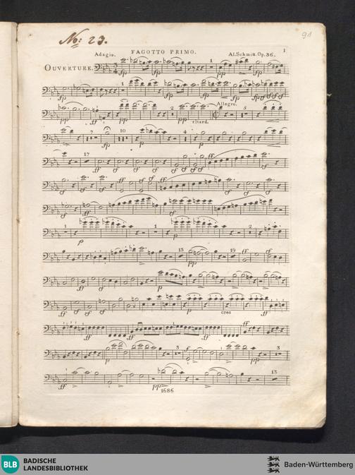 Overtura per 2 violini, alto, violoncello e basso, 2 flauti, 2 clarini, 2 oboi, 2 fagotti, 2 corni, 2 trombe, trombone basso e timbani : op. 36 / composta e dedicata all' orchestra di Lipsia da Aloys Schmitt