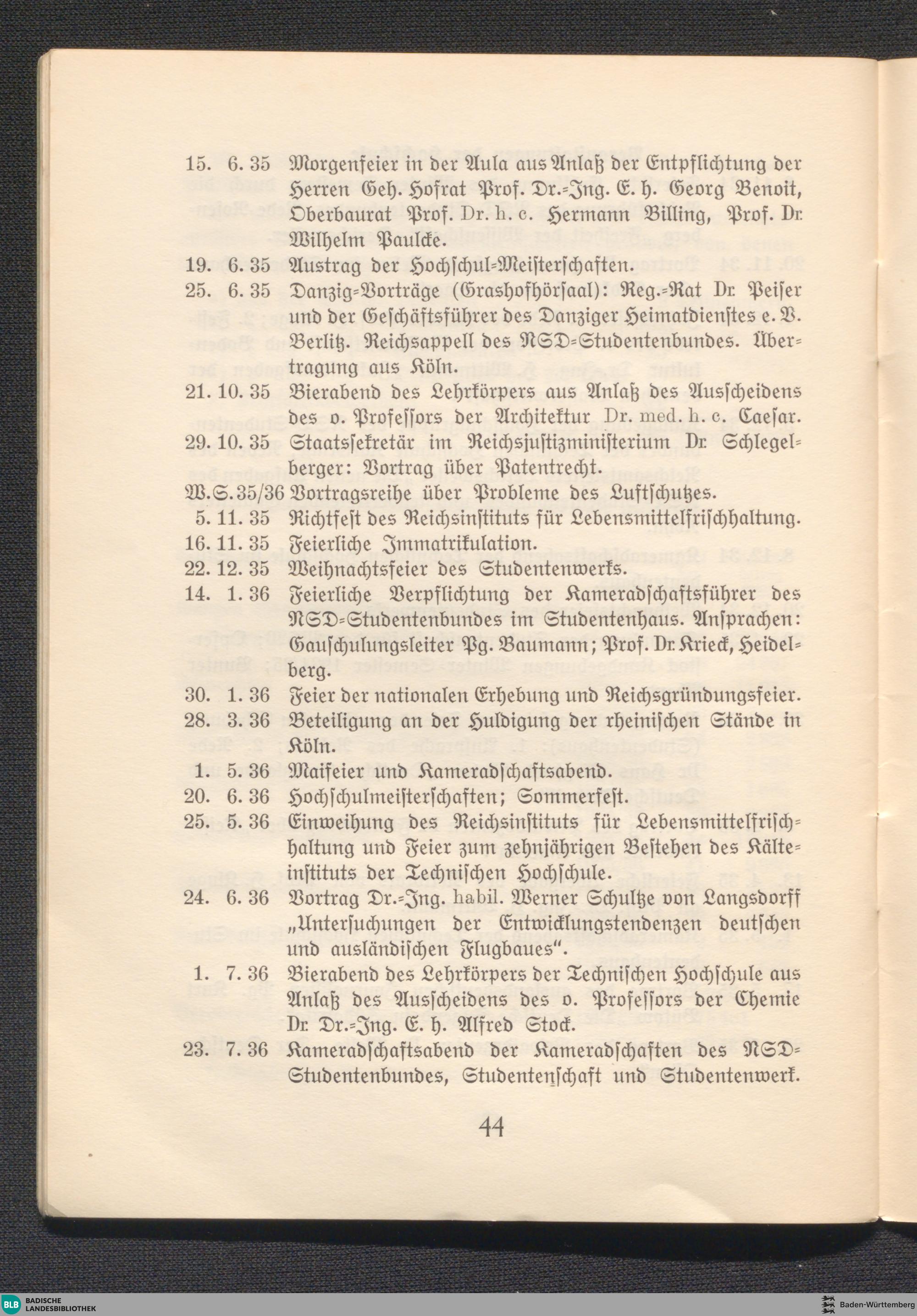 Chronik für die Rektoratsjahre 1934/1935 und 1935/1936