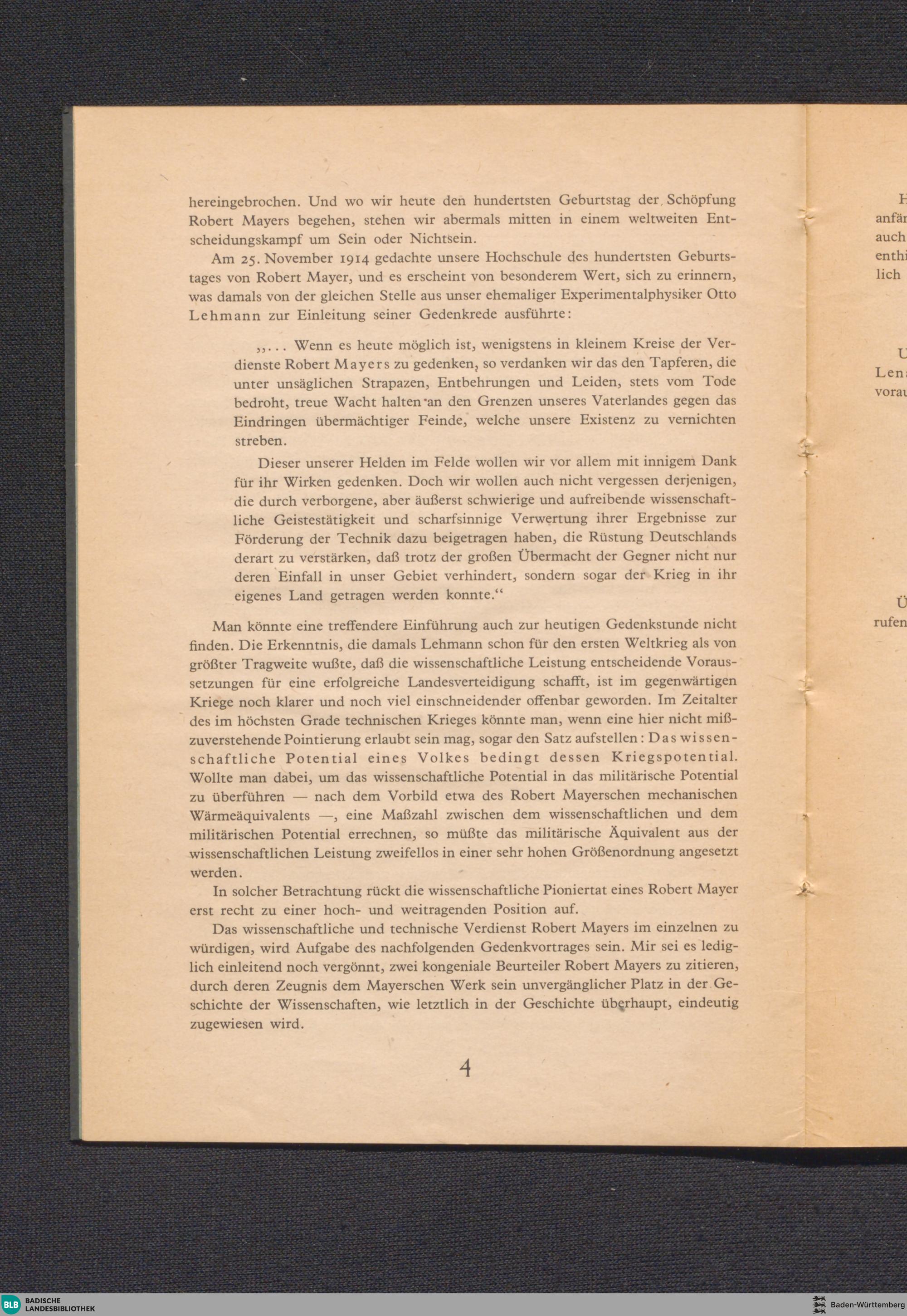 Robert-Mayer-Gedenkstunde zum hundertjährigen Bestehen des Gesetzes von der Erhaltung der Energie / veranst. von der Technischen Hochschule Karlsruhe ... am 15. Mai 1942