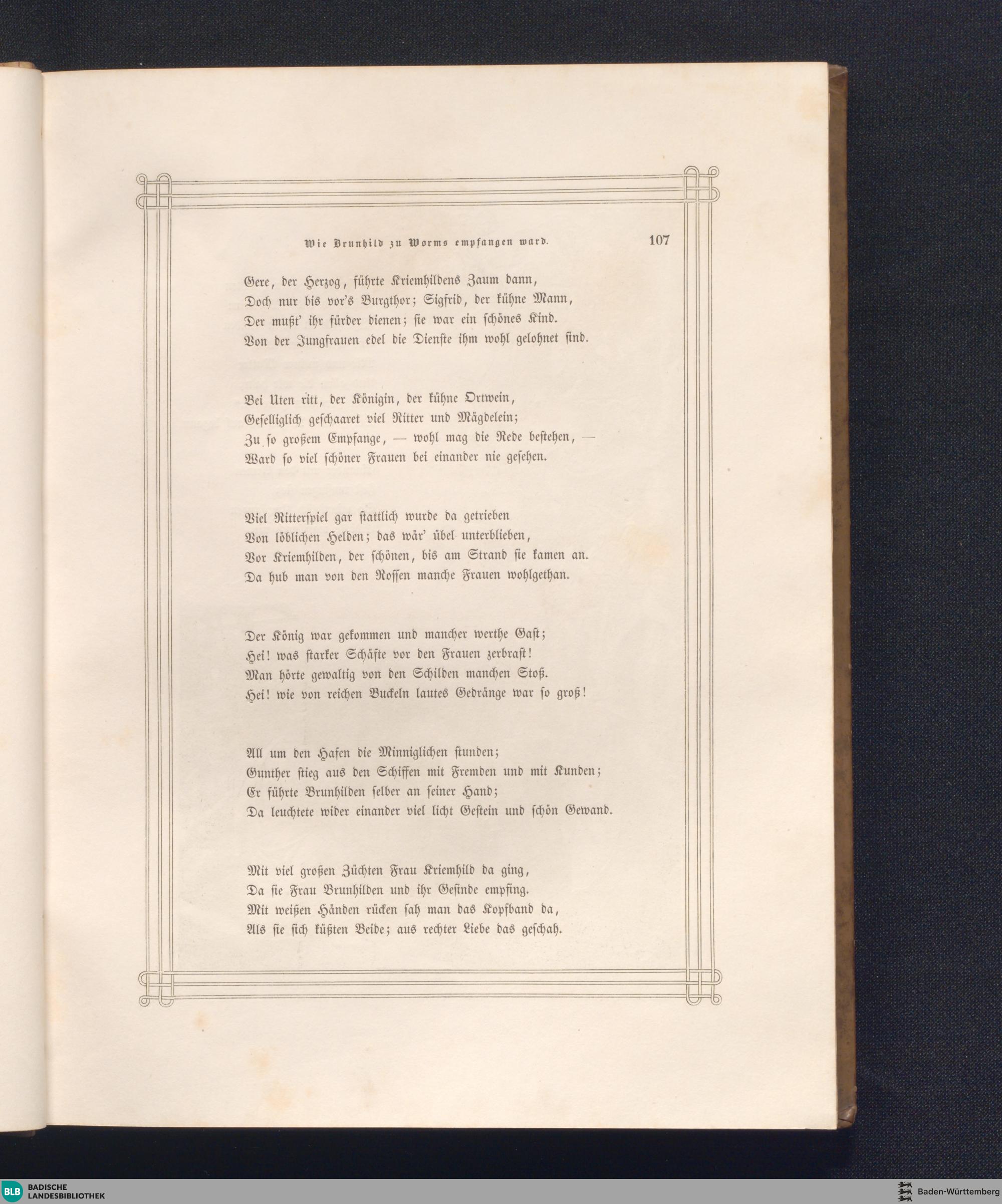 Der Nibelungen Noth / illustrirt mit Holzschnitten nach Zeichnungen von Julius Schnorr von Carolsfeld und Eugen Neureuther. Die Bearbeitung des Textes von Gustav Pfizer