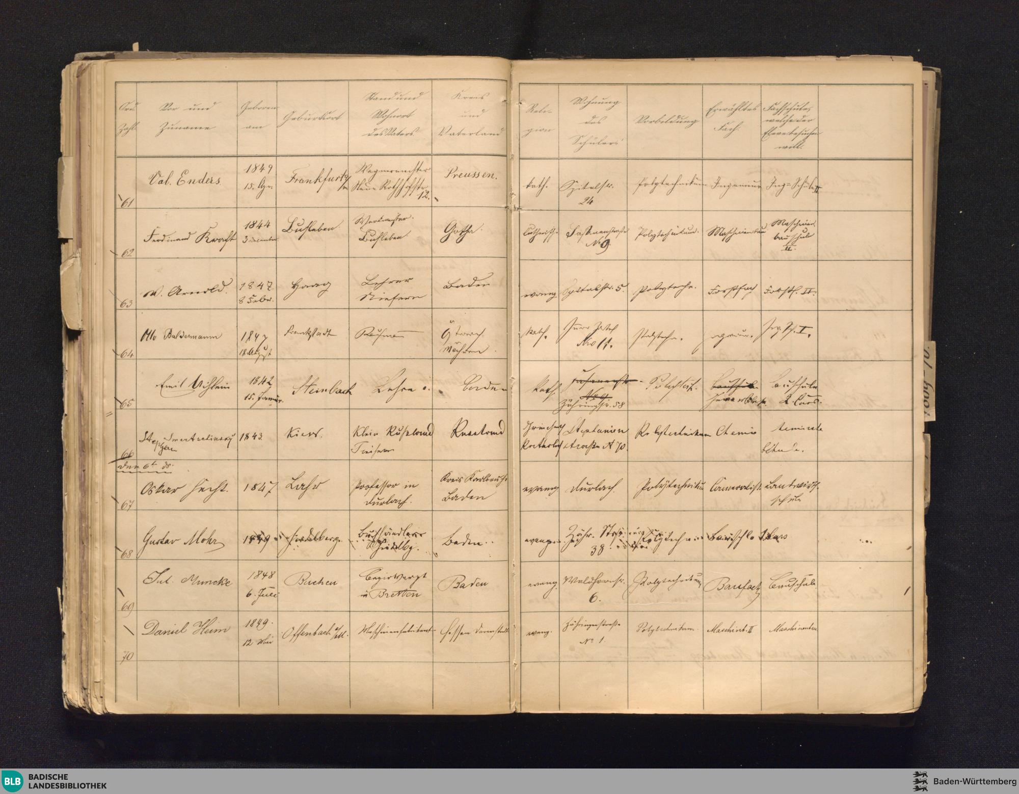Einschreibebuch der Studirenden Studienjahr 1868/69