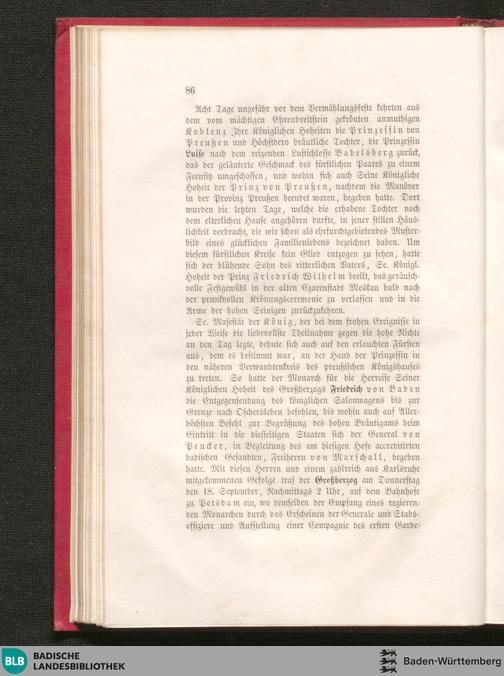 Gedenkbuch zur bleibenden Erinnerung an die Verlobung und Vermählung ... des ... Großherzogs Friedrich von Baden mit ... der ... Prinzessin Luise von Preußen / hrsg. von F. J. Schunggart