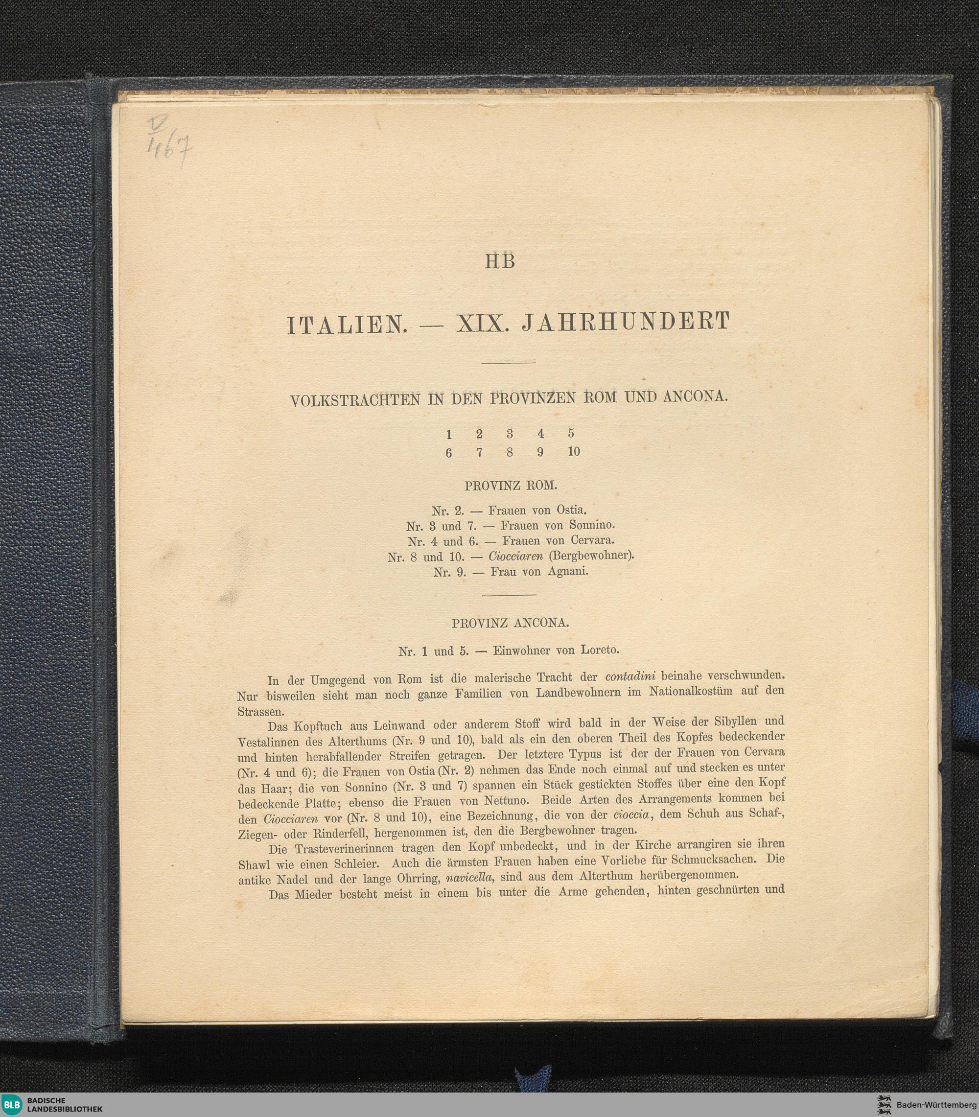 Italien. - XIX. Jahrhundert. Volkstrachten in den Provinzen Rom und Ancona