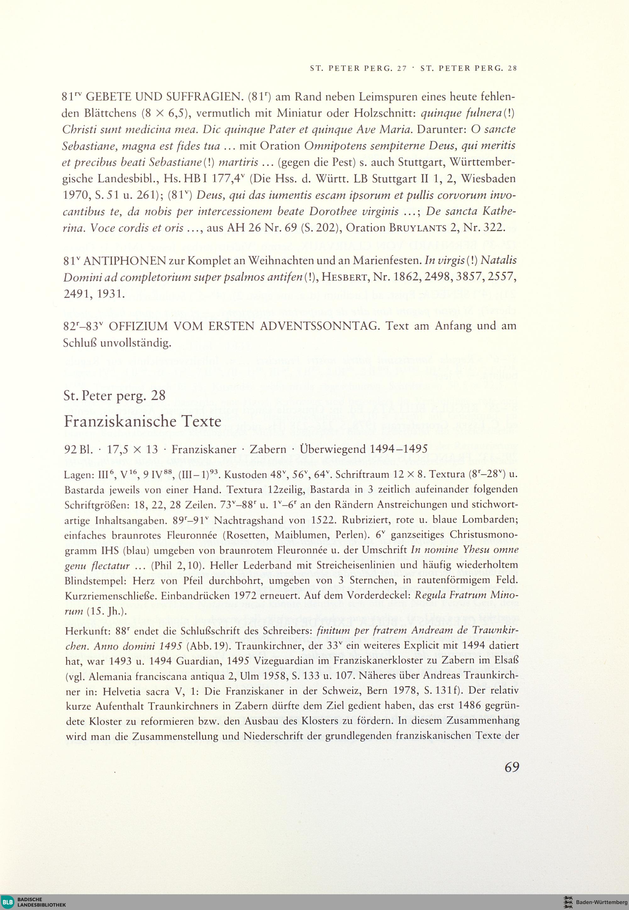 Die Handschriften von St. Peter im Schwarzwald