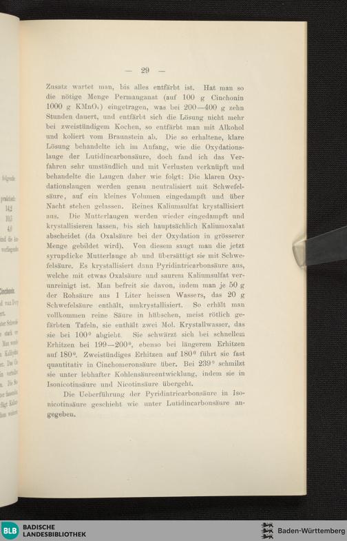 I. Darstellung der Isonicotinsäure