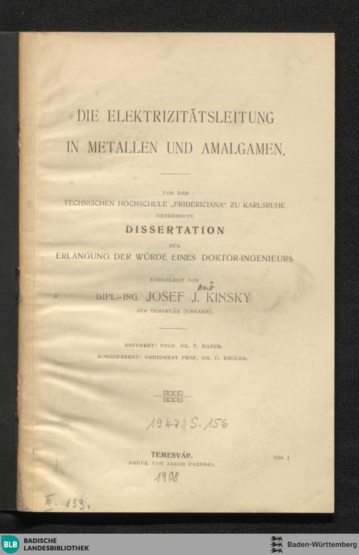 Die Elektrizitätsleitung in Metallen und Amalgamen / vorgelegt von Josef J. Kinsky