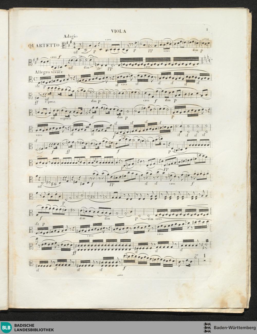 Quatuor pour deux Violons, Viola et Violoncelle : Op. 13 / composé par Felix Mendelssohn Bartholdy