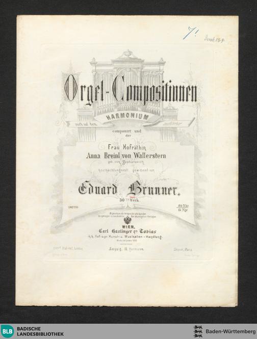 Orgel-Compositionen : auch auf demHarmonium ausführbar; 30tes Werk / componirt von Eduard Brunner