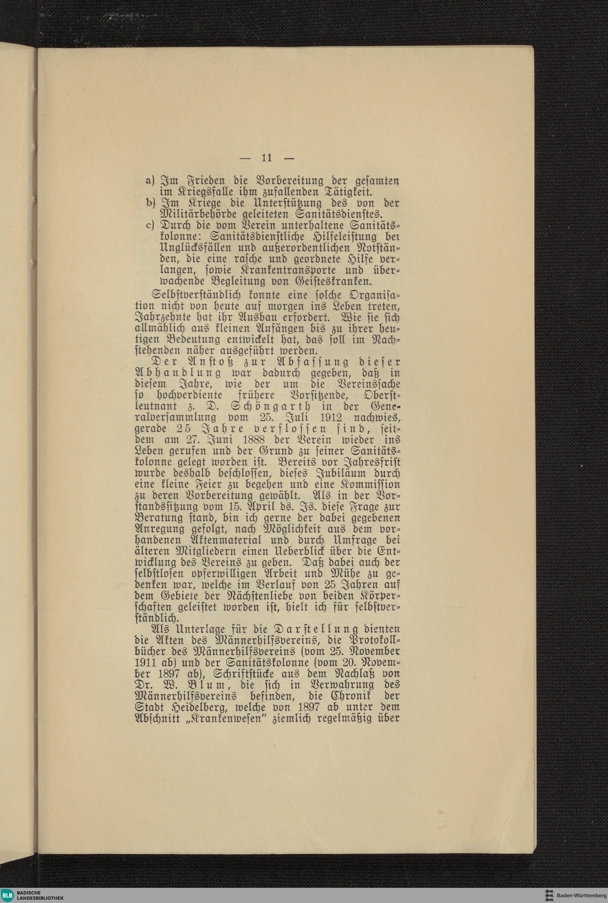 Der Männerhilfsverein vom Roten Kreuz zu Heidelberg und seine Sanitätskolone : ein Gedenkblatt zum 25jährigen Bestehen
