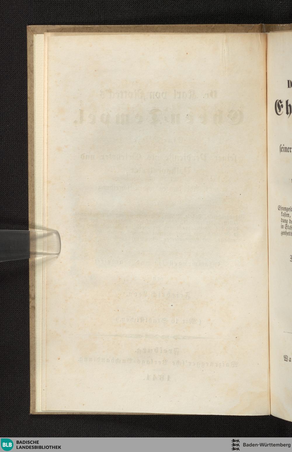 Dr. Karl von Rotteck's Ehren-Tempel : eine Skizze seiner Verdienste als Gelehrter und Volksvertreter, nebst Abbildungen und Beschreibung der Ehrengeschenke, Pokale, Becher, Bürgerkrone und Aufbewahrungskasten, einer perspektivischen Ansicht des Schönihofes, der Abbildung des Adelswappens und der geprägten Gedächtnißmedaille, ... / zsgest. und bearb. von Friedrich Leon