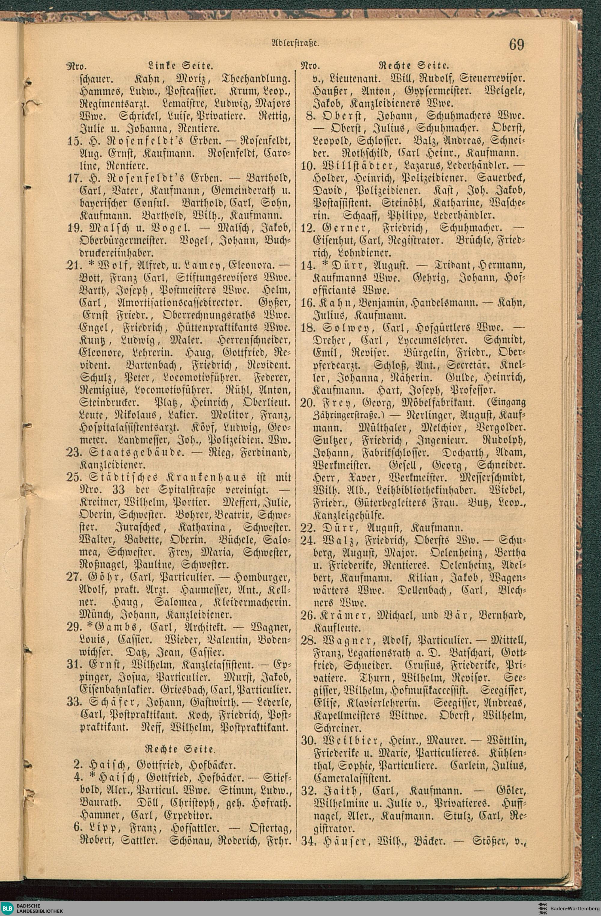 Adresskalender für die Residenzstadt Karlsruhe