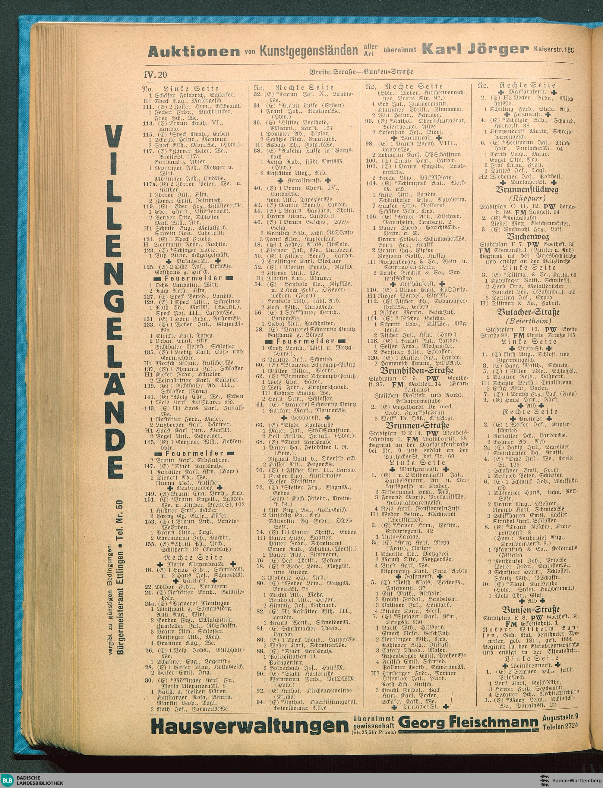 IV. Verzeichnis der Straßen (nach dem Abc) und Häuser (nach den Nummern) mit Angabe...