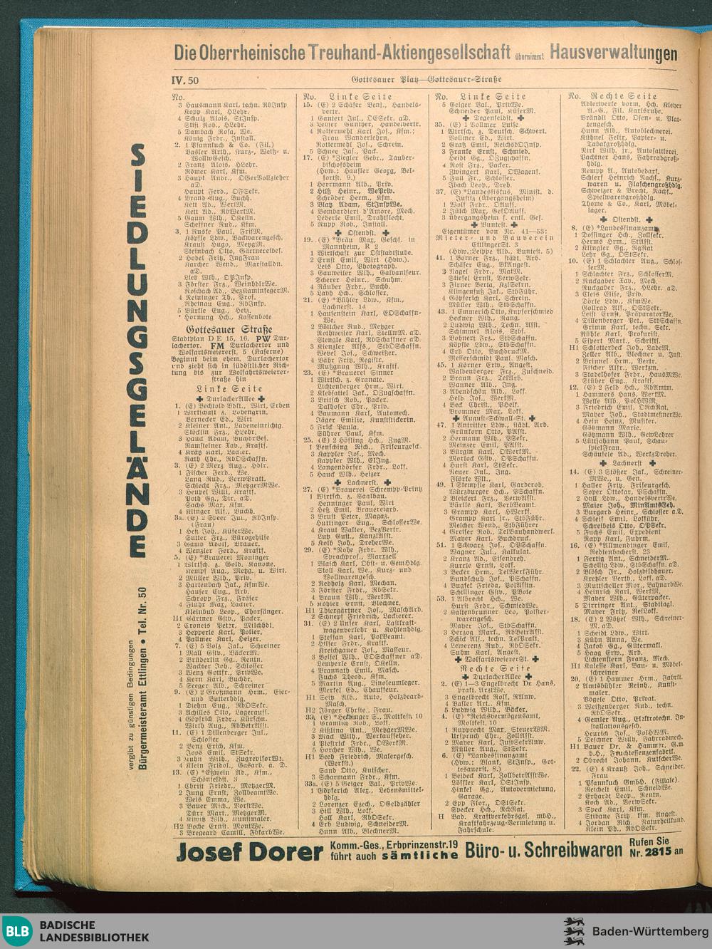 IV. Verzeichnis der Straßen (nach dem Abc) und Häuser (nach den Nummern) mit Angabe...