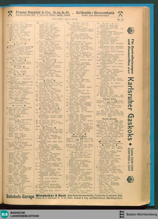 Adressbuch (Stadtbuch, Einwohnerbuch) der Landeshauptstadt Karlsruhe